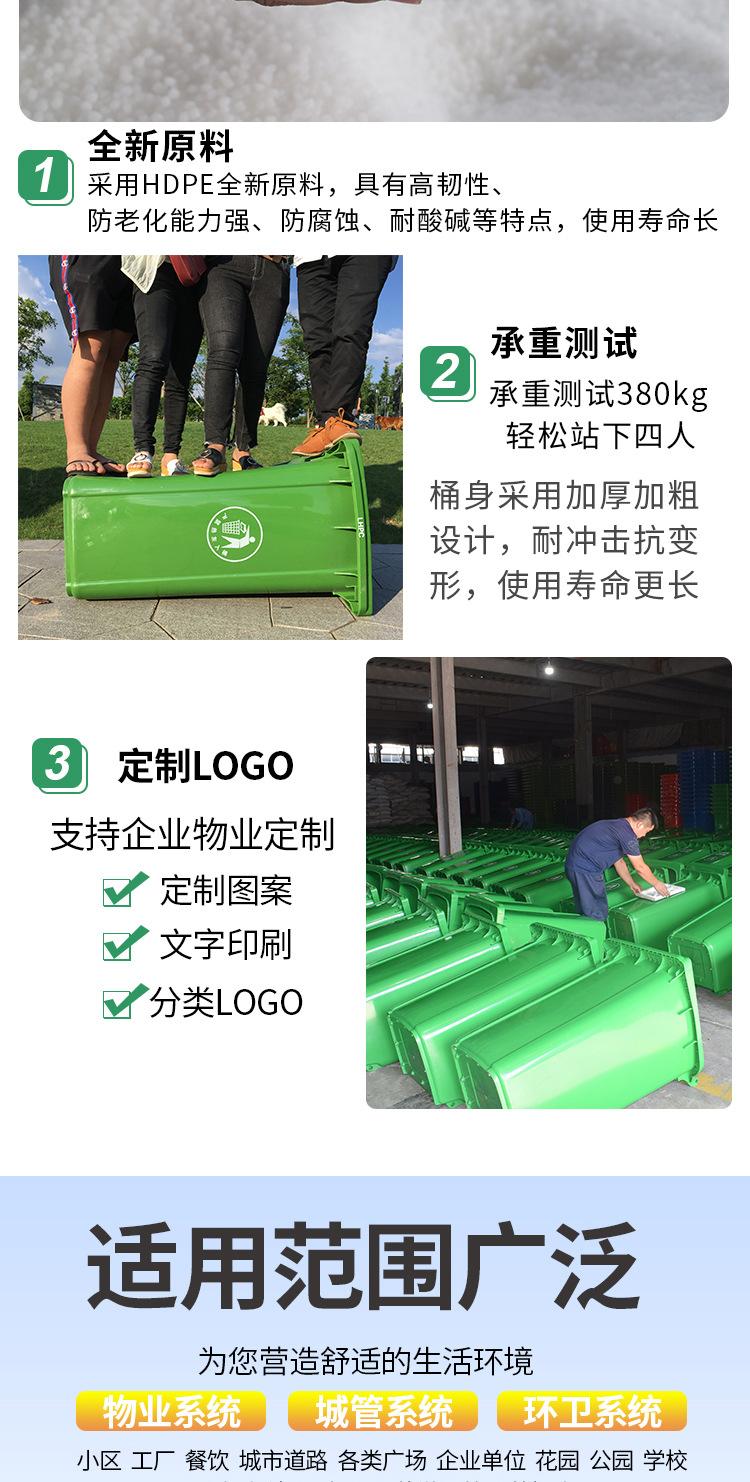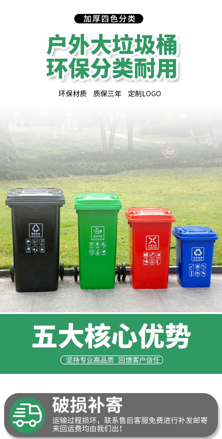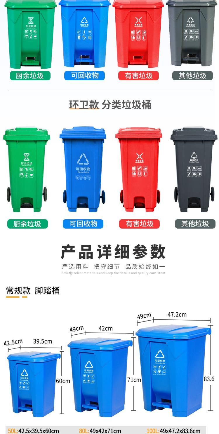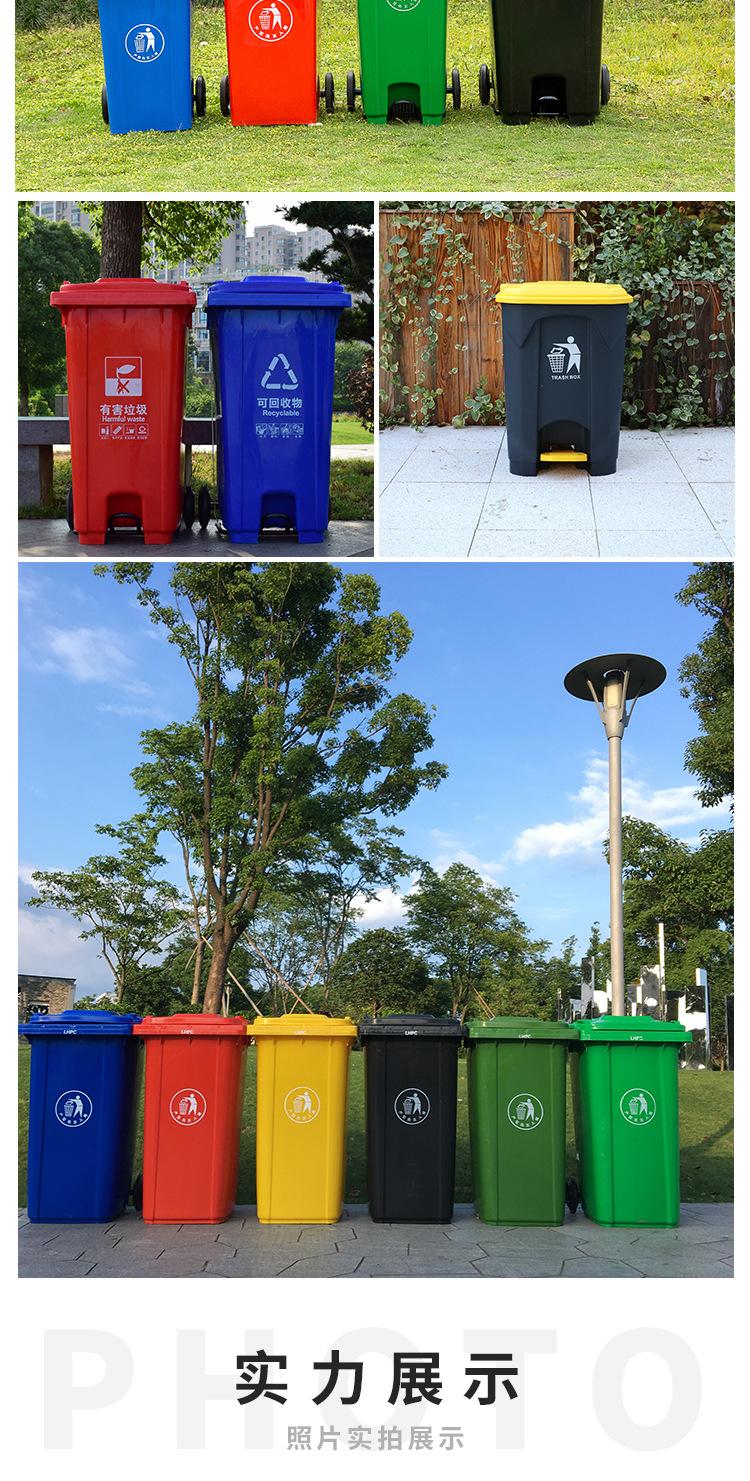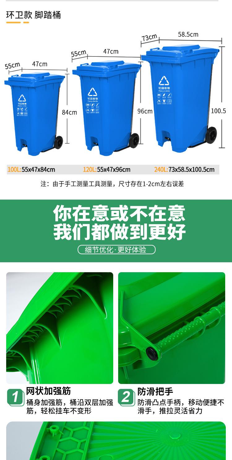 Bote de basura exterior de saneamiento con tapa pie remolque engrosado 120L clasificación polea protección ambiental bote de basura gran capacidad