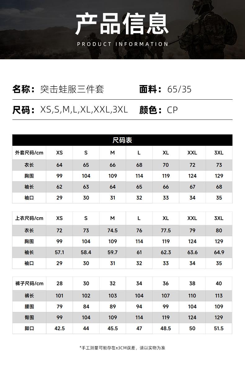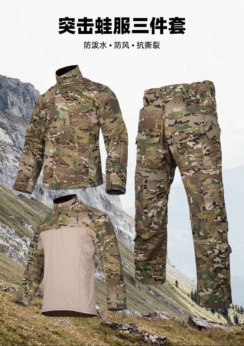 Traje de camuflaje de asalto Cema OEM para hombre, traje táctico de asalto de tres piezas, estilo militar para exteriores, traje táctico de camuflaje tipo rana.