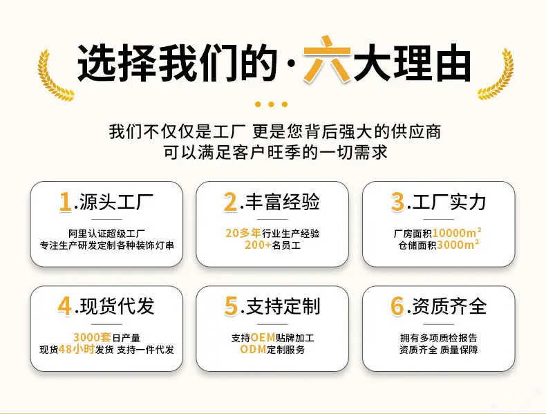 4. Las guirnaldas de luces se producen en masa por máquinas. Ocasionalmente, el número de cuentas de lámpara en guirnaldas individuales puede variar ligeramente. Según los estándares de la industria, la tasa de luces faltantes y luces muertas en una guirnalda está dentro de 3 (inclusive). Si excede 3, es normal. Para las cuentas de lámpara, las devolveremos o cambiaremos de forma gratuita y haremos la compensación correspondiente.