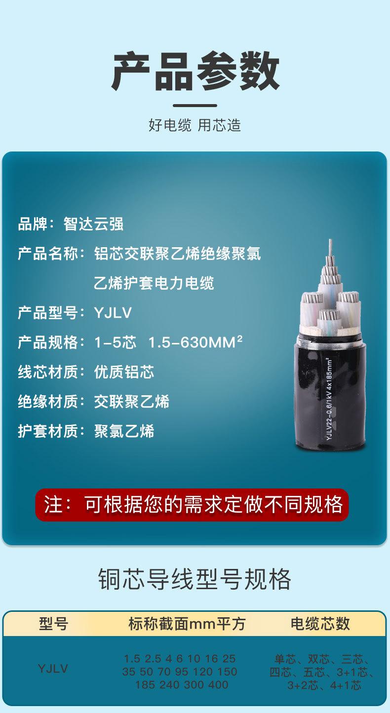 Cable de aluminio estándar nacional personalizado del fabricante Yjlv22, cable de aluminio de dos núcleos, tres núcleos, cuatro núcleos, cinco núcleos, cable de alimentación blindado.