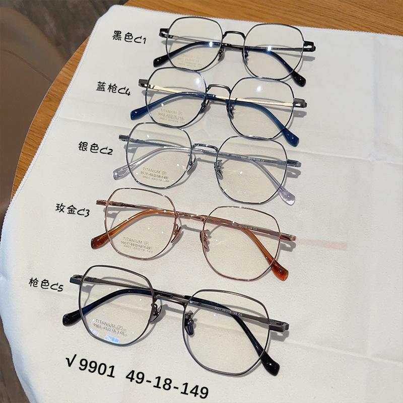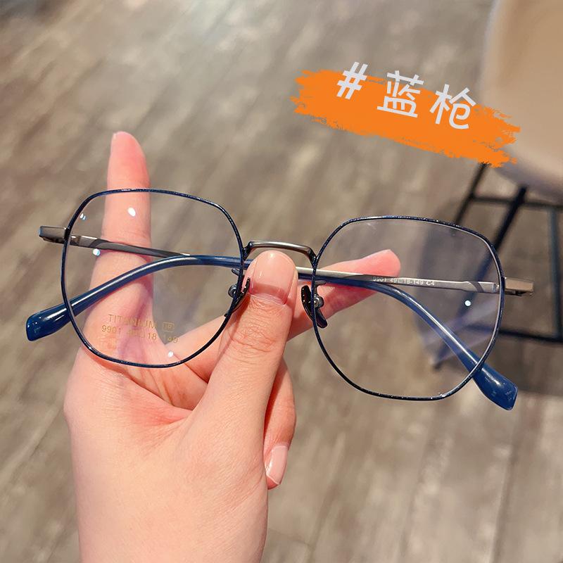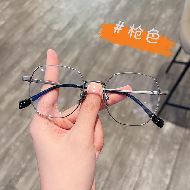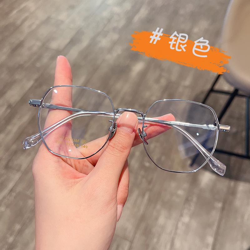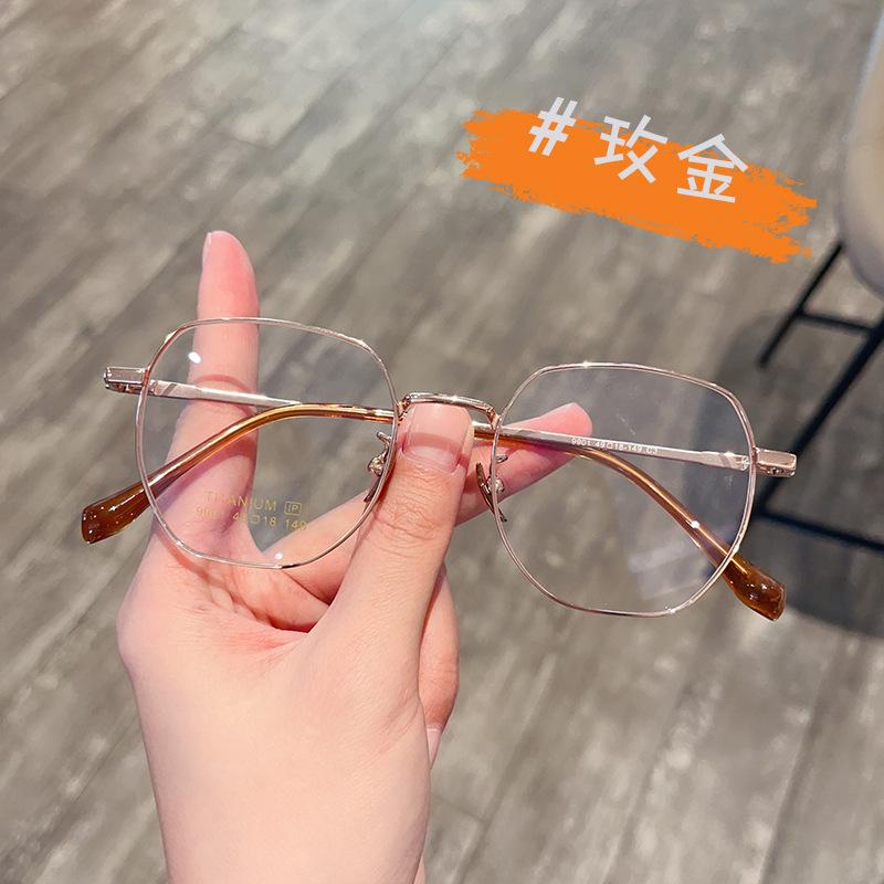 Nuevo libro rojo súper ligero Mismo estilo Celebridad de Internet retro montura de titanio sencilla polígono montura pequeña armazón de gafas con altura