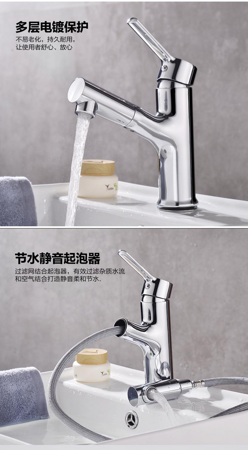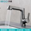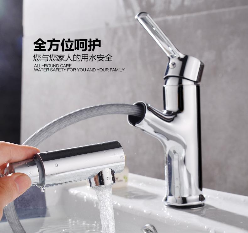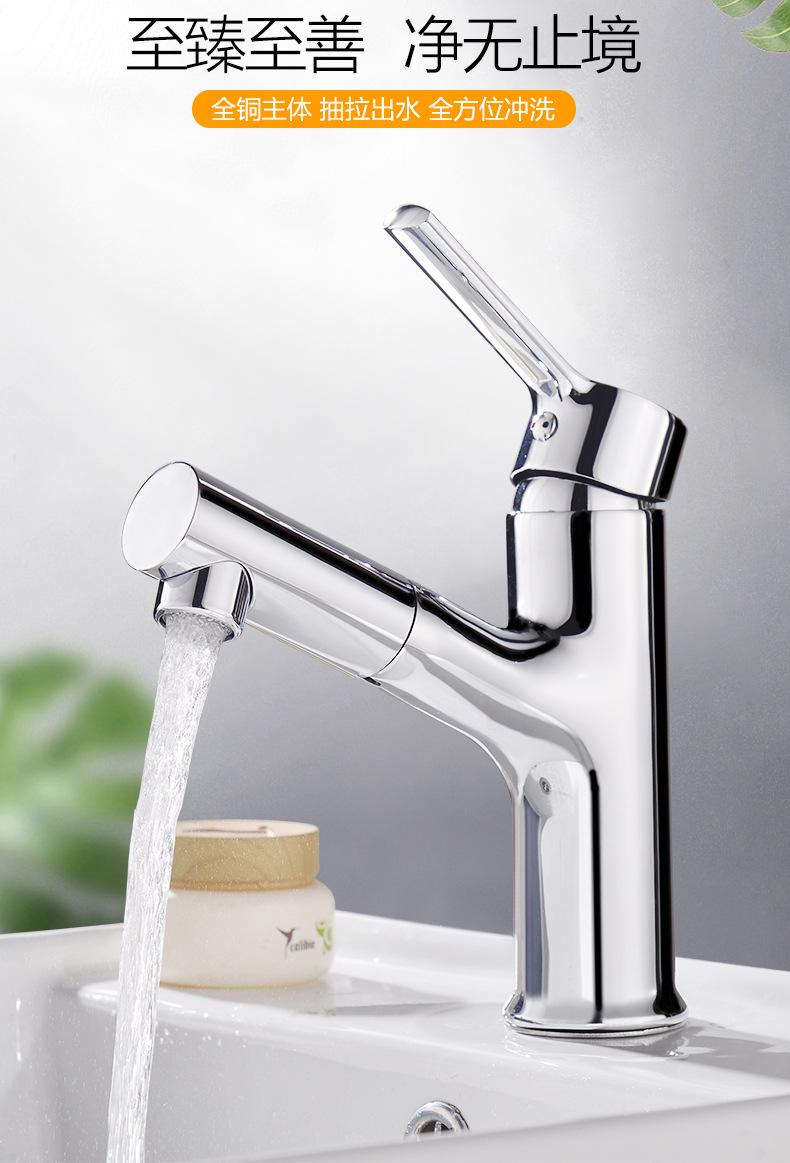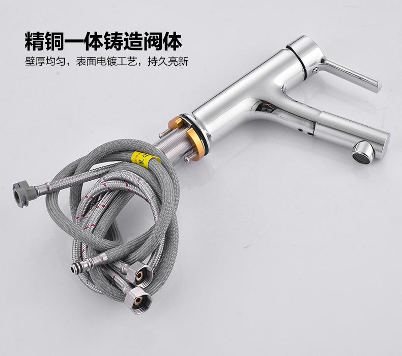 Grifo de Lavabo Extraíble, Grifo de Lavabo de Cobre para Agua Fría y Caliente, Grifo de un Agujero con Manguera, Estilo Moderno