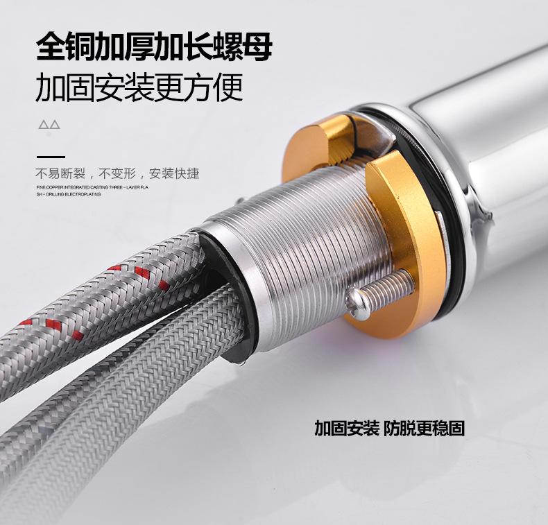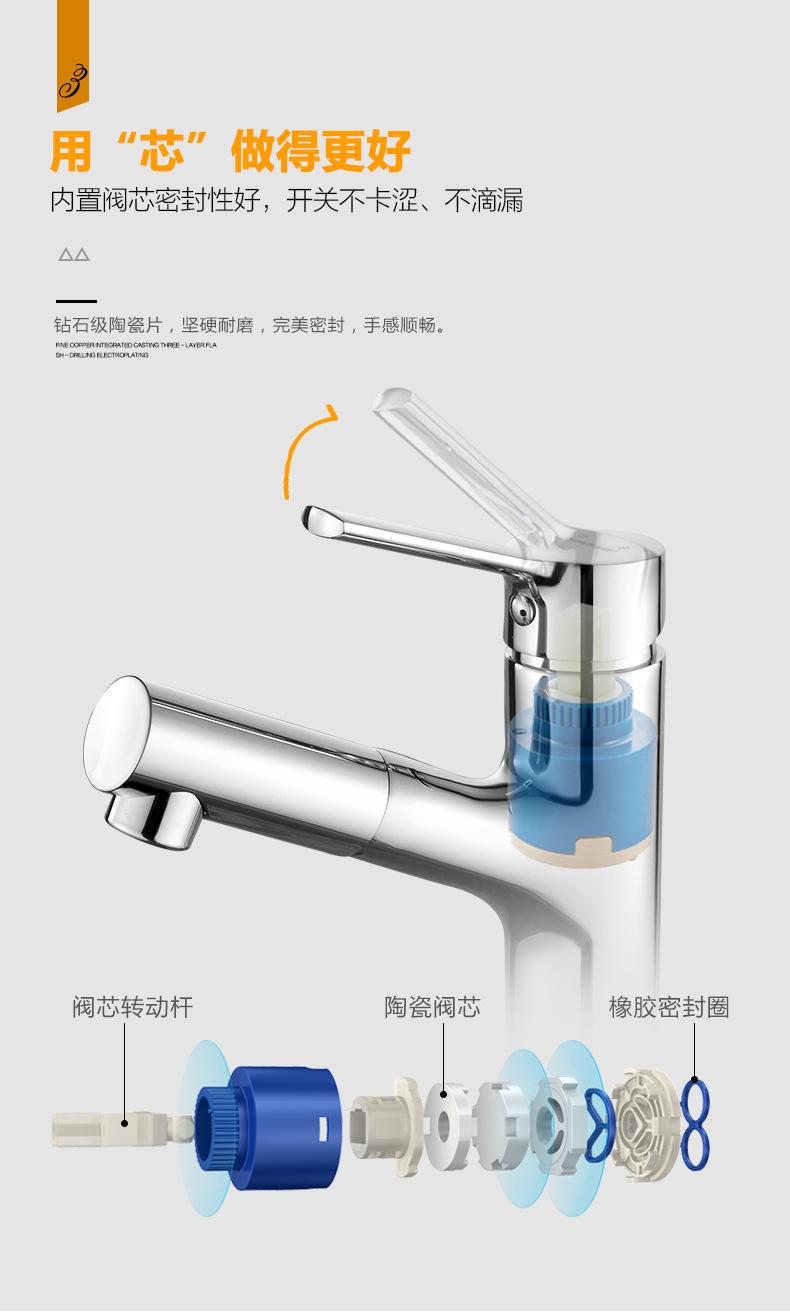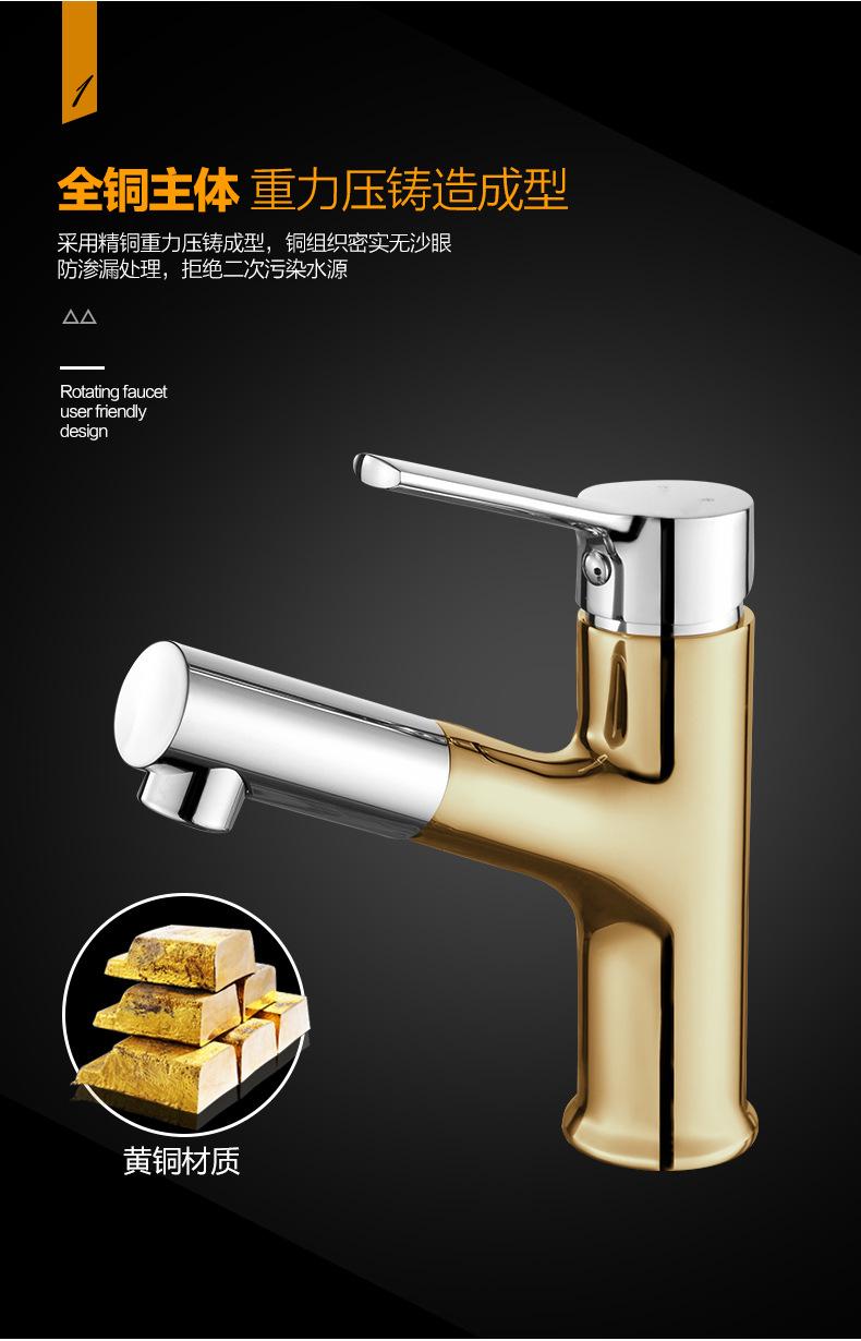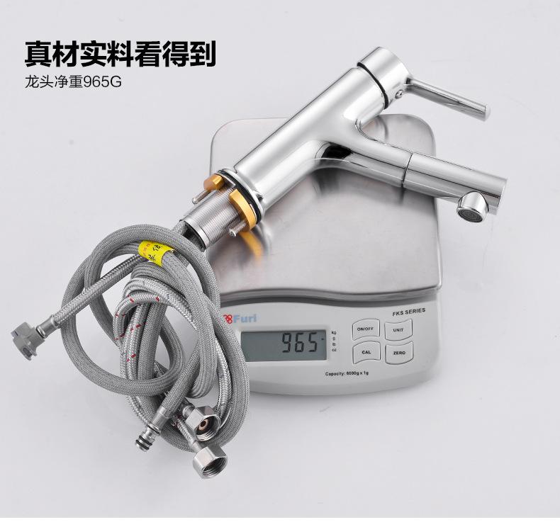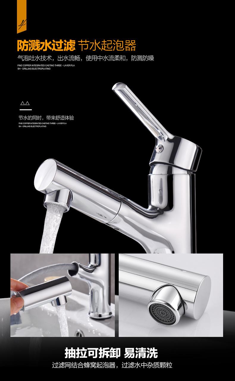 Grifo de Lavabo Extraíble, Grifo de Lavabo de Cobre para Agua Fría y Caliente, Grifo de un Agujero con Manguera, Estilo Moderno