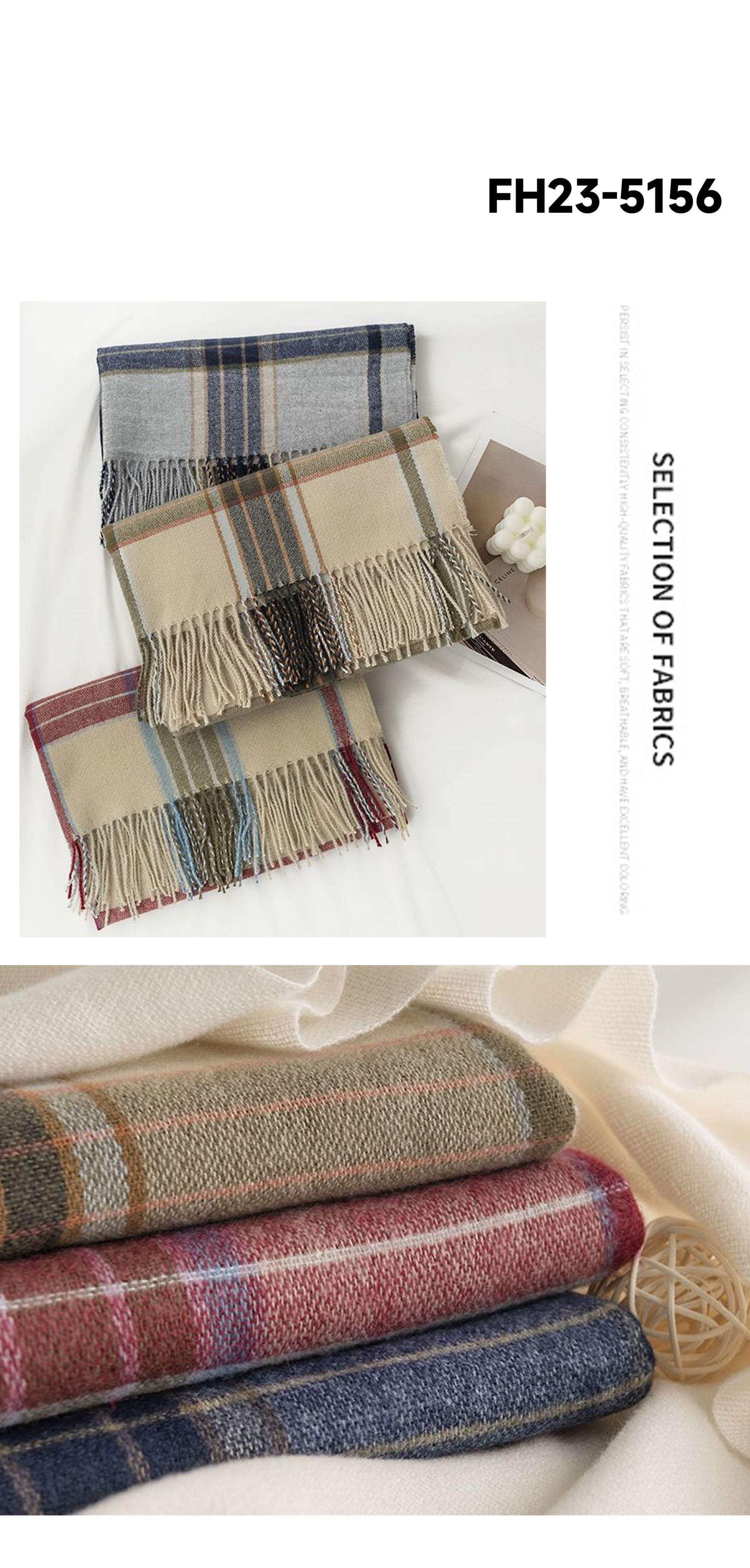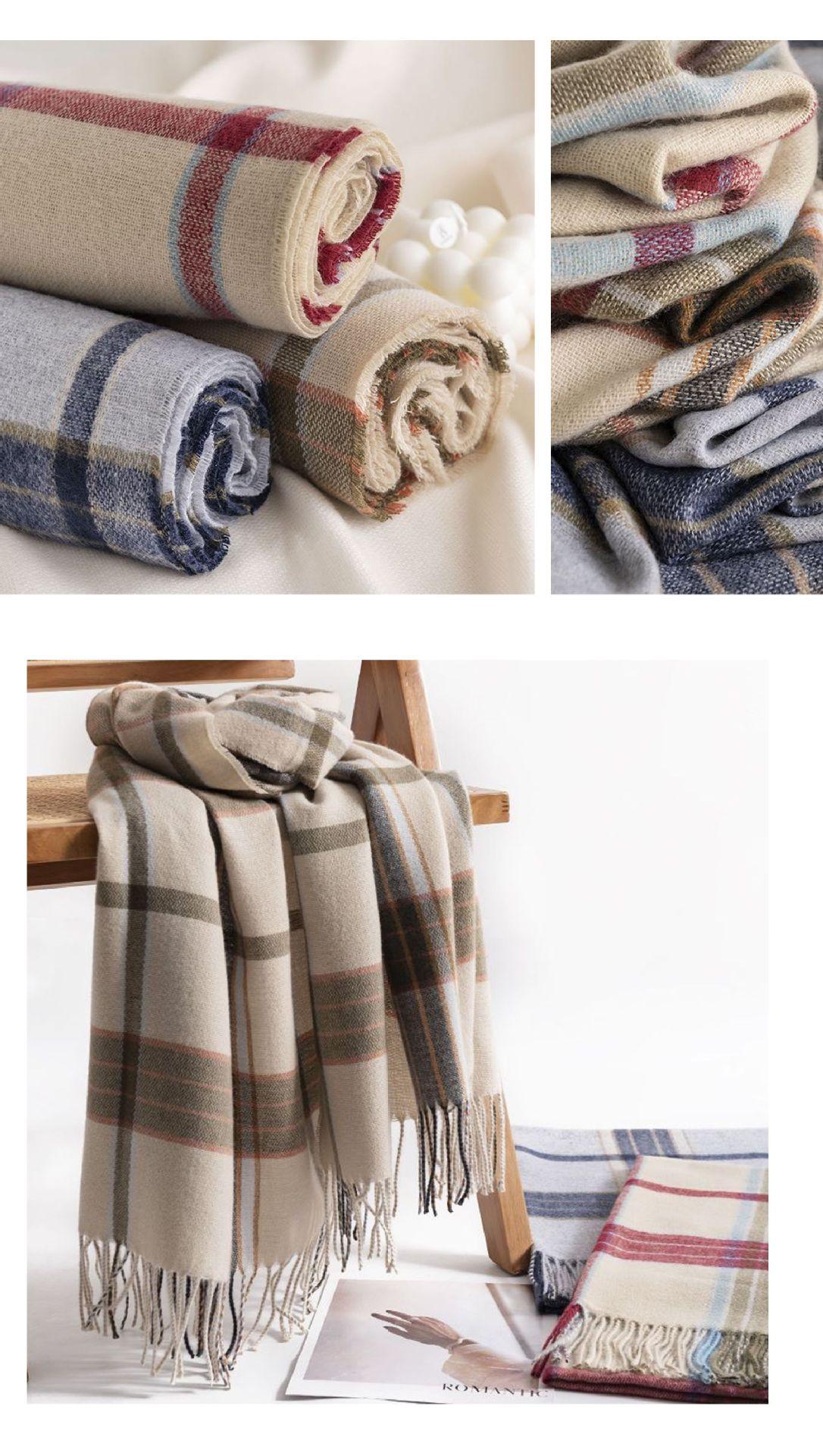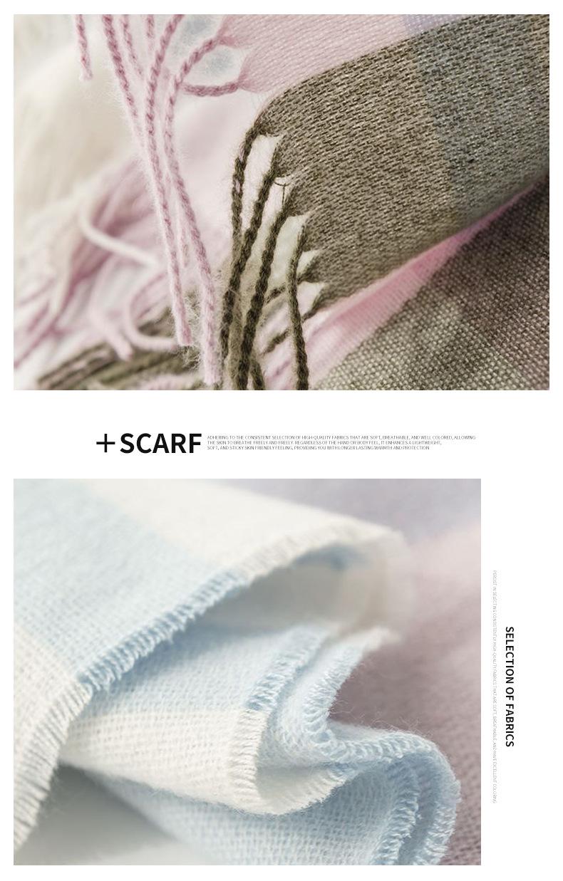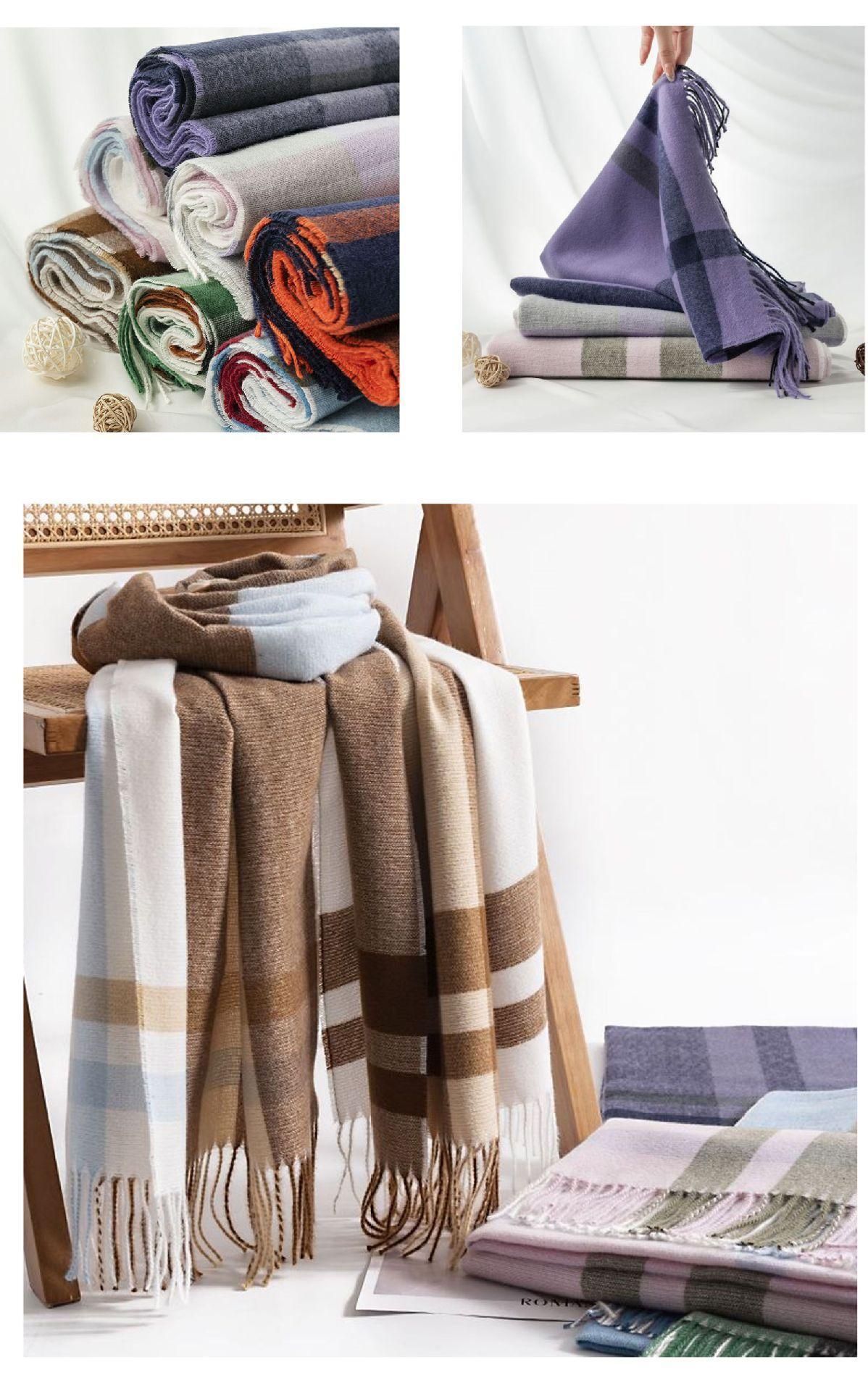 Bufanda de invierno a cuadros con borlas estampadas, de imitación de cachemira, a la moda, de longitud media, gruesa y cálida.