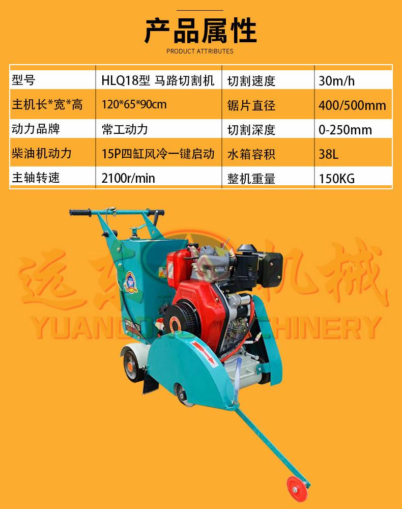 Máquina cortadora de carreteras diésel HLQ18, cortadora de pavimento de hormigón, máquina cortadora de juntas y grabado, máquina cortadora de carreteras