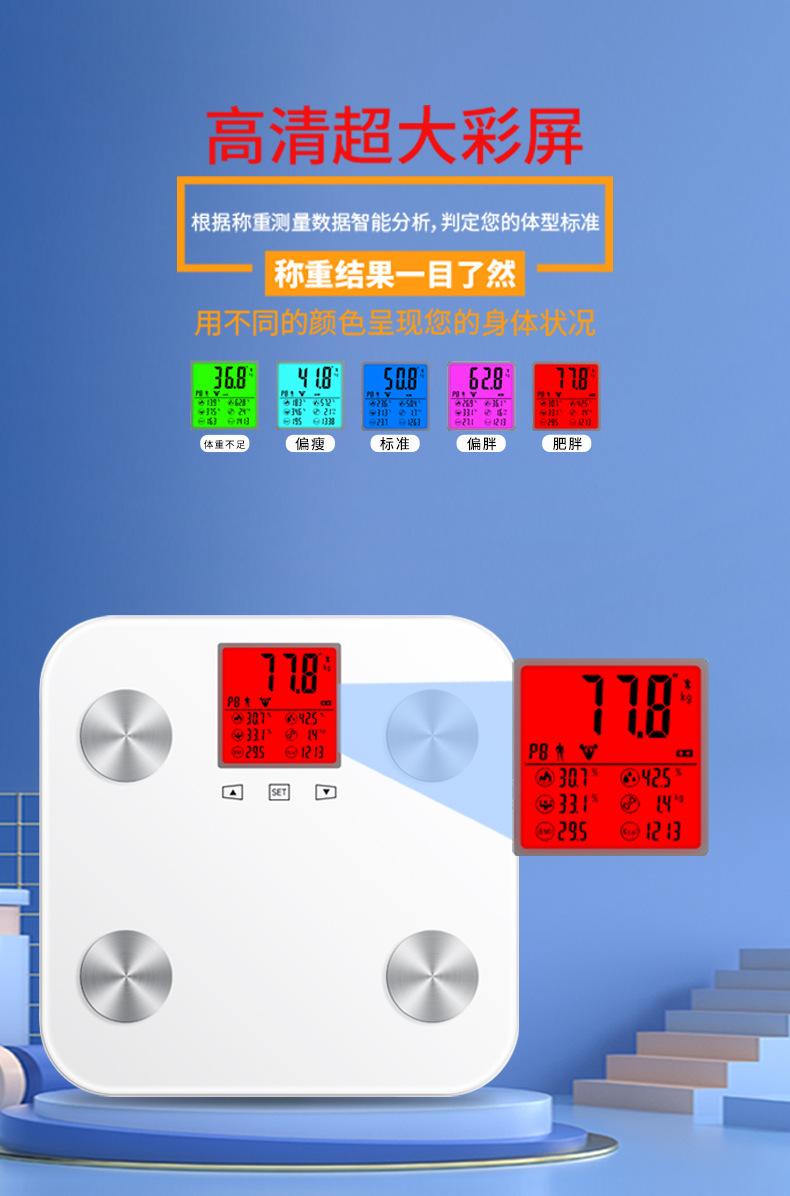 Báscula de grasa corporal FRK con pantalla a color, báscula electrónica inteligente con Bluetooth, aplicación ecológica Huawei, báscula de grasa corporal transfronteriza para comercio exterior