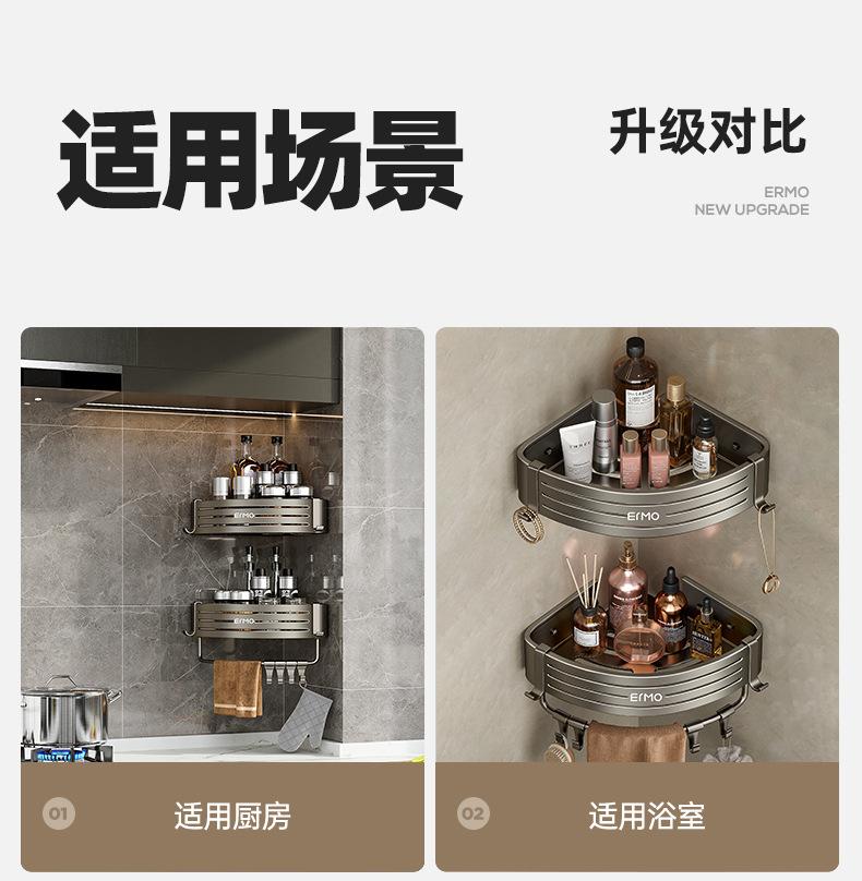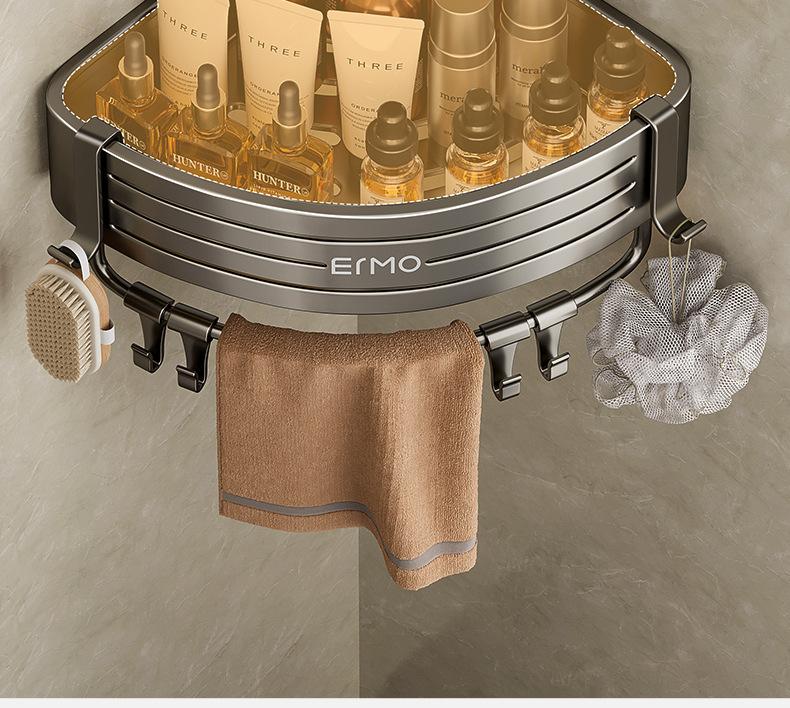 Estante de almacenamiento para baño sin perforaciones, estante de almacenamiento triangular para pared de inodoro y ducha, estante de almacenamiento para baño montado en la pared