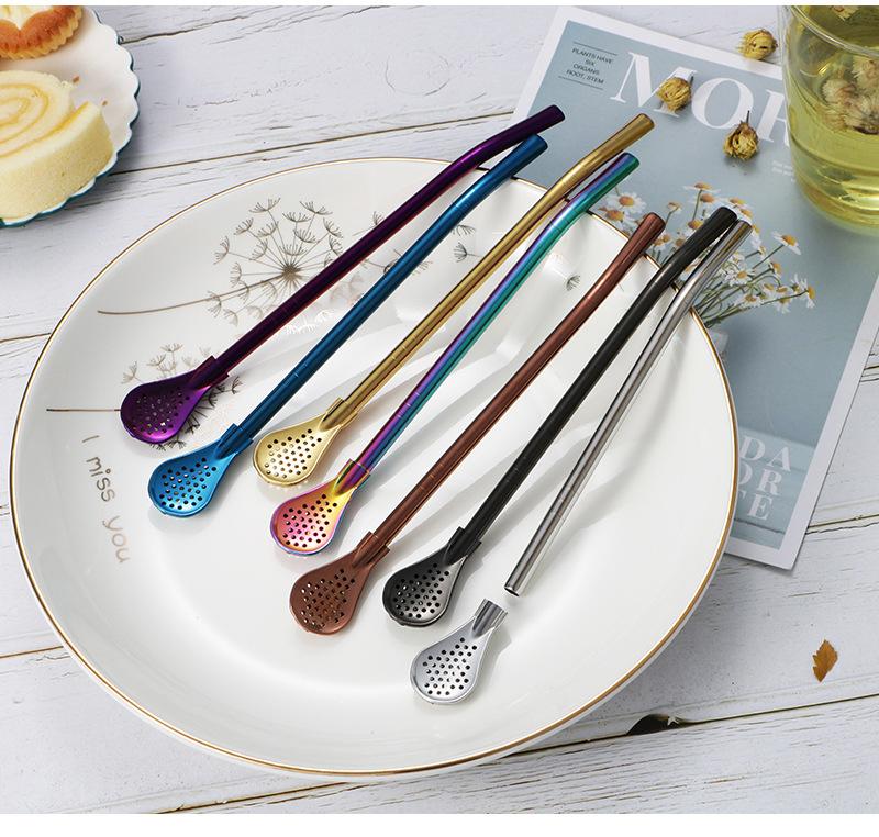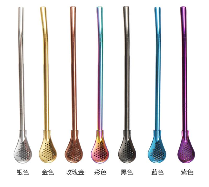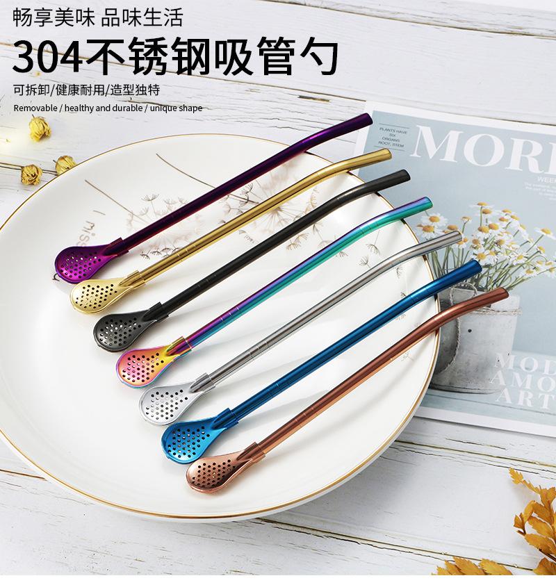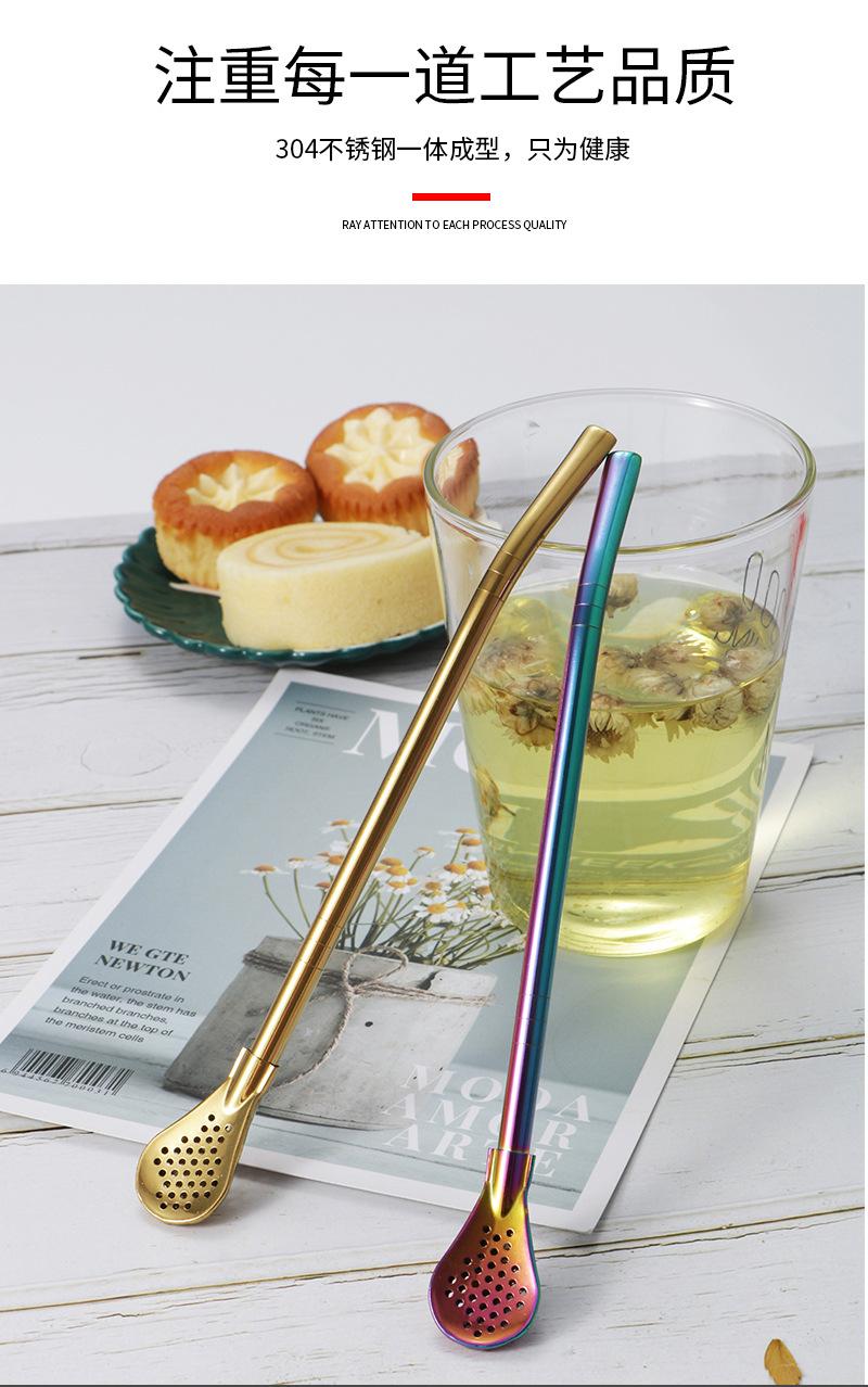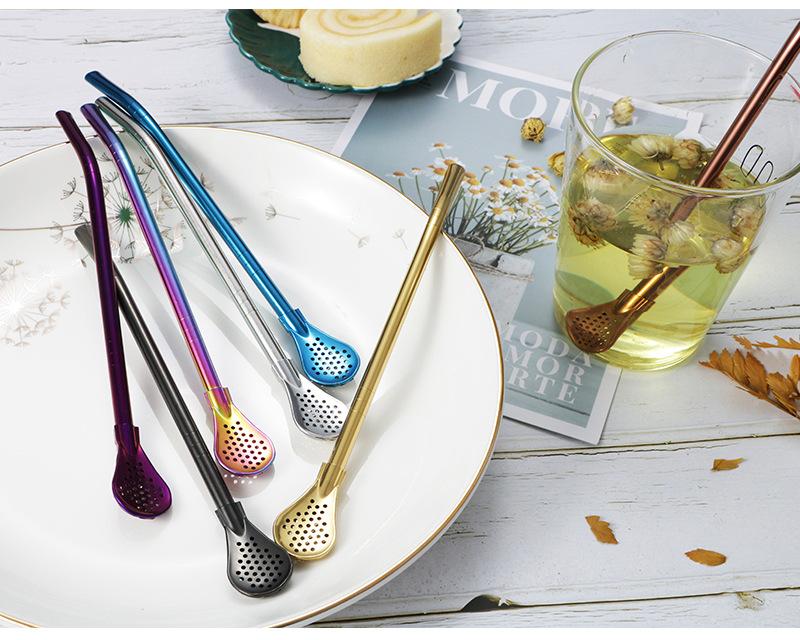 Suministro directo de fábrica acero inoxidable 304 colador de paja desmontable colador de té drenaje de jugo cuchara para residuos té con leche café cuchara mezcladora