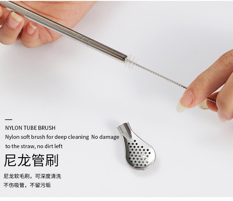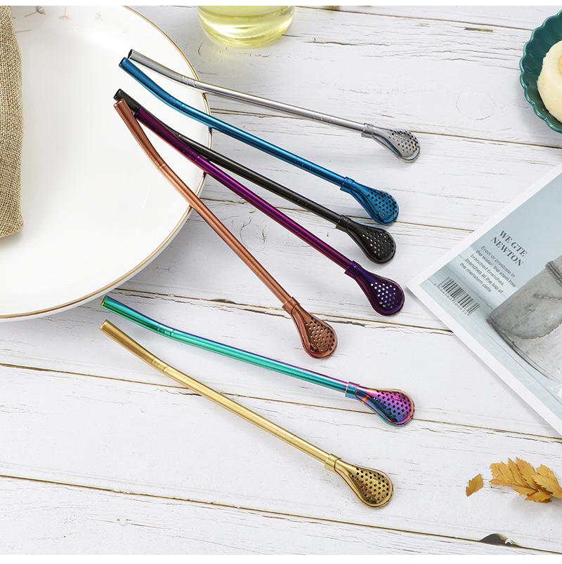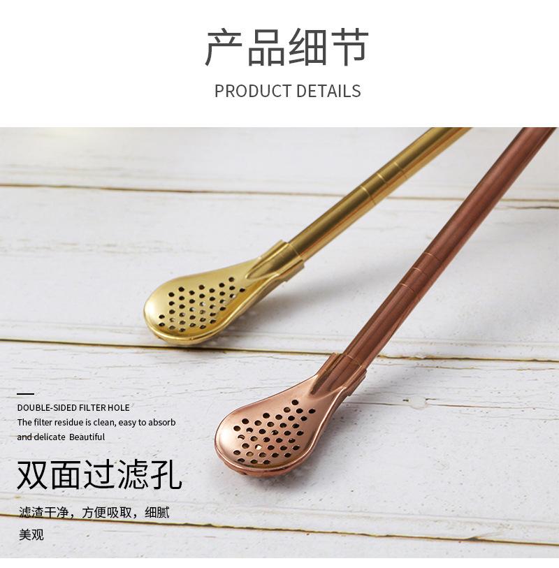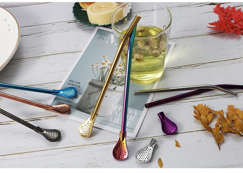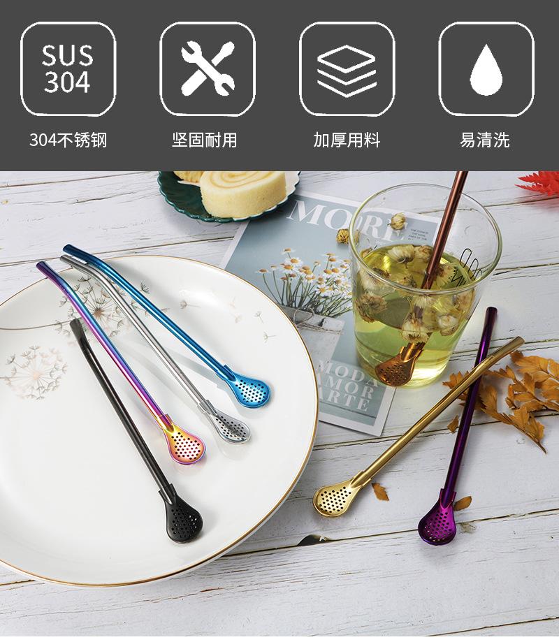 Suministro directo de fábrica acero inoxidable 304 colador de paja desmontable colador de té drenaje de jugo cuchara para residuos té con leche café cuchara mezcladora