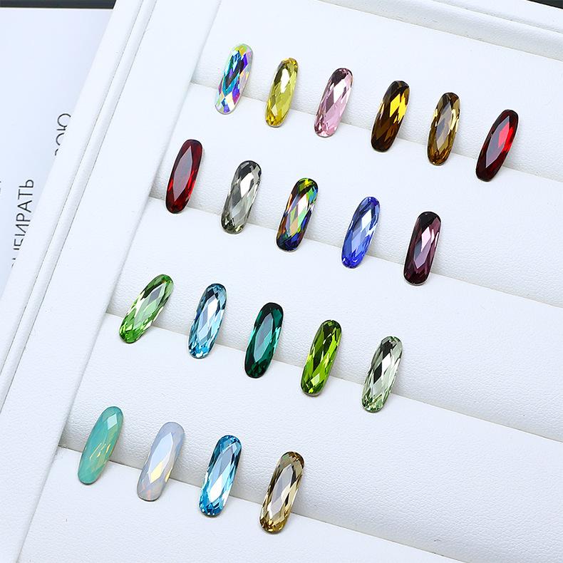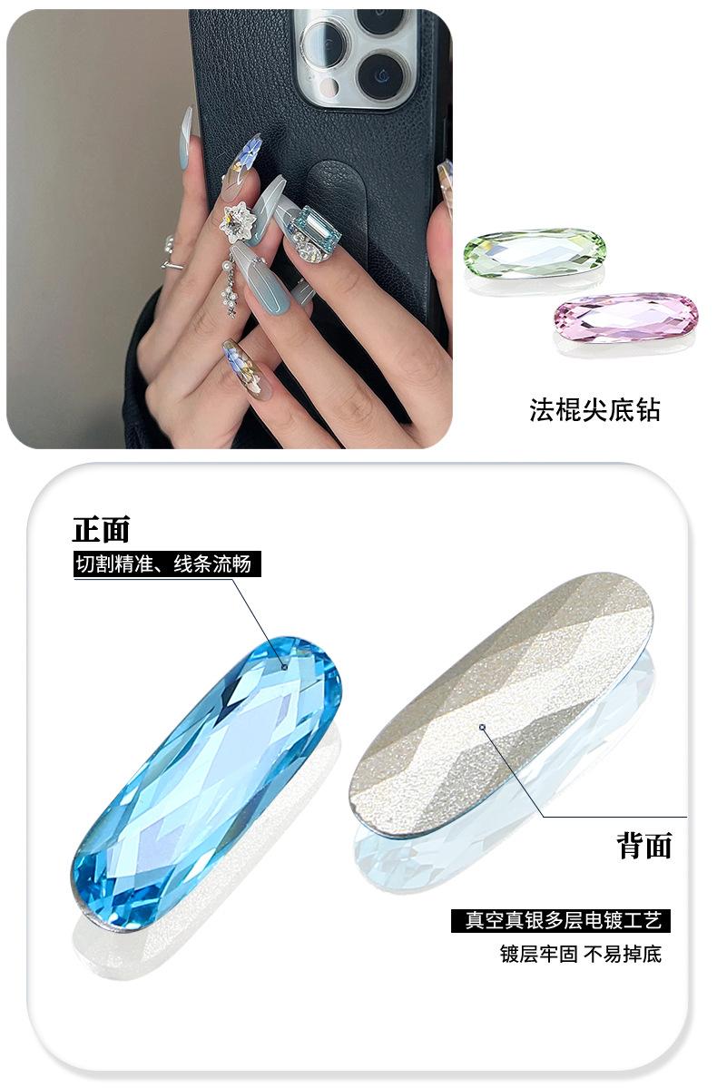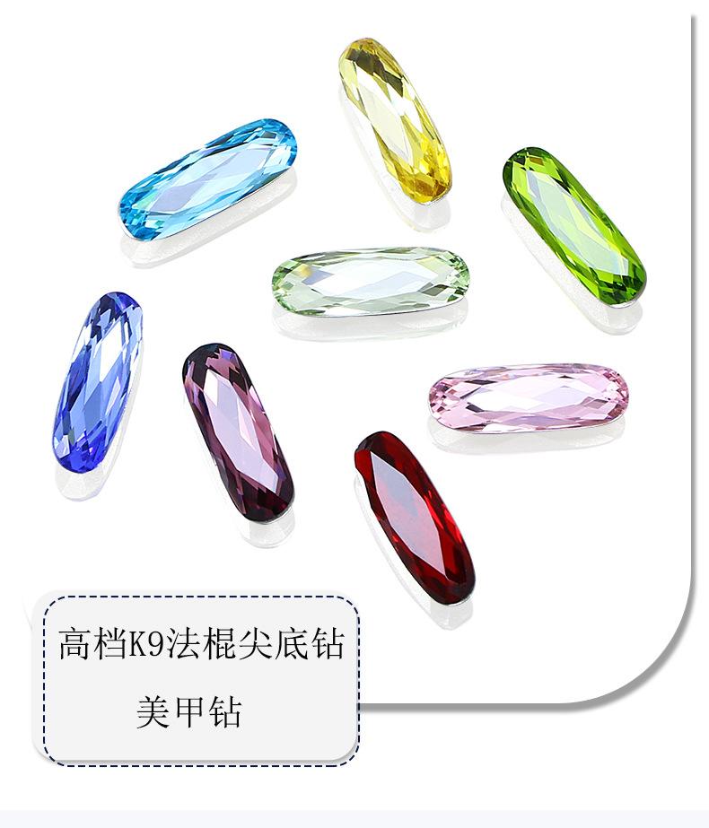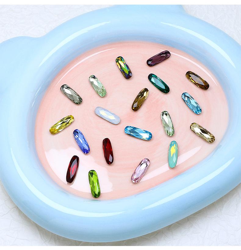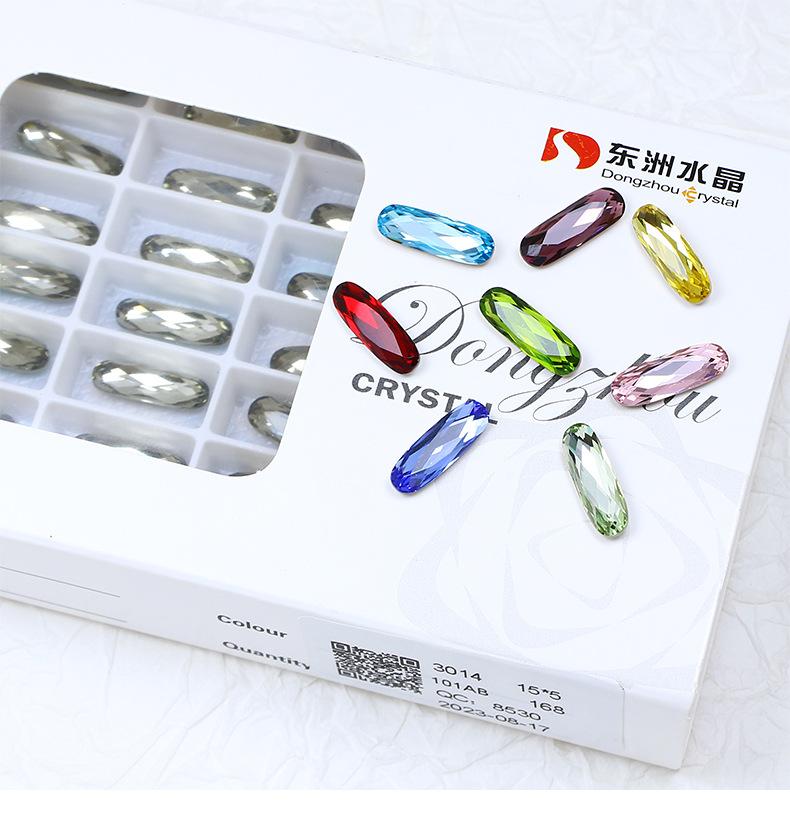 Taladro de uñas de palo francés de cristal Dongzhou, fábrica de accesorios de joyería para bricolaje, diamante de cristal de fondo puntiagudo ovalado con borde cruzado de color, diamantes de imitación