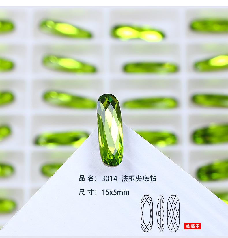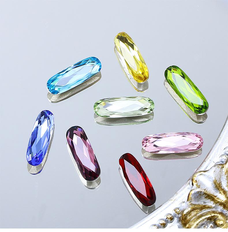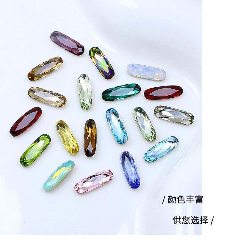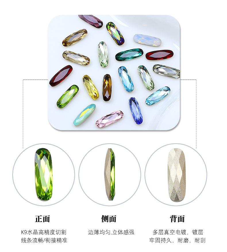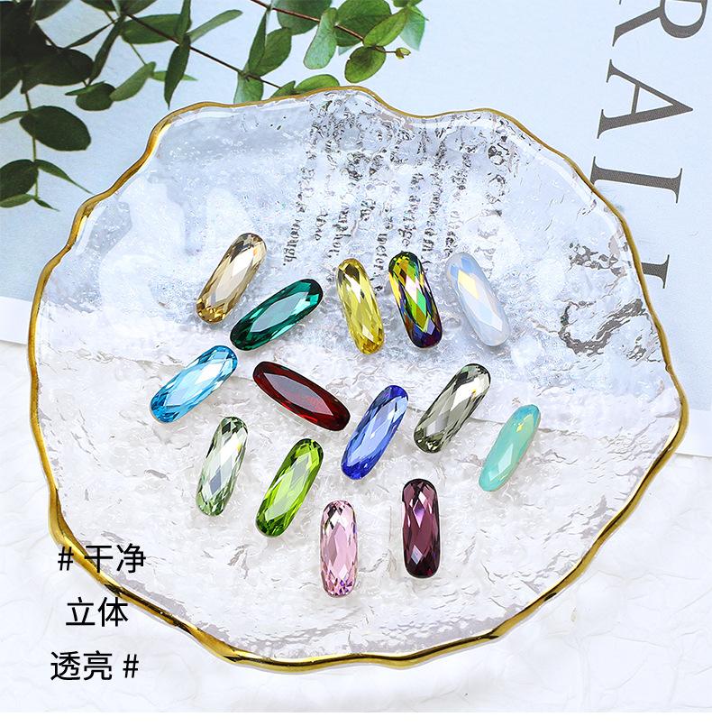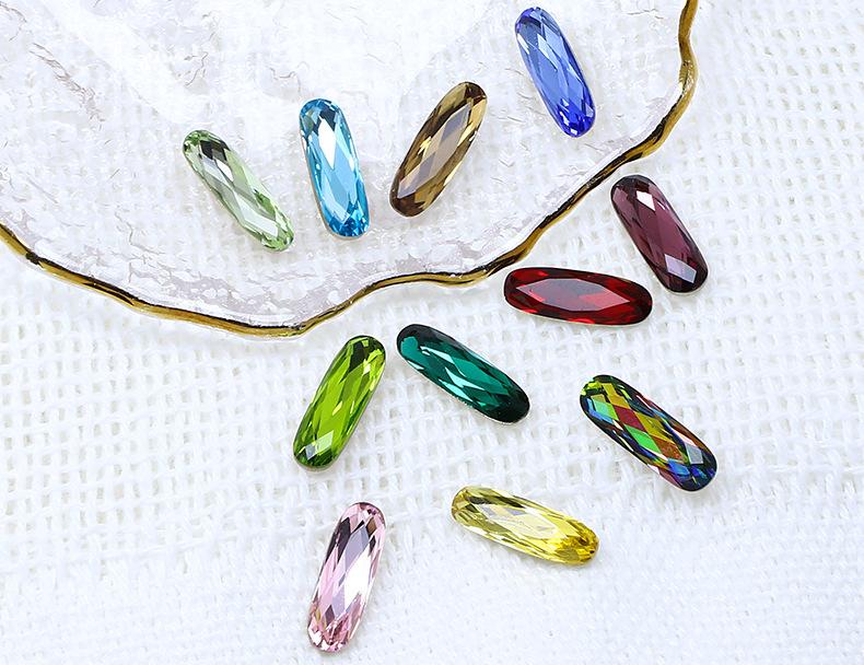 Taladro de uñas de palo francés de cristal Dongzhou, fábrica de accesorios de joyería para bricolaje, diamante de cristal de fondo puntiagudo ovalado con borde cruzado de color, diamantes de imitación