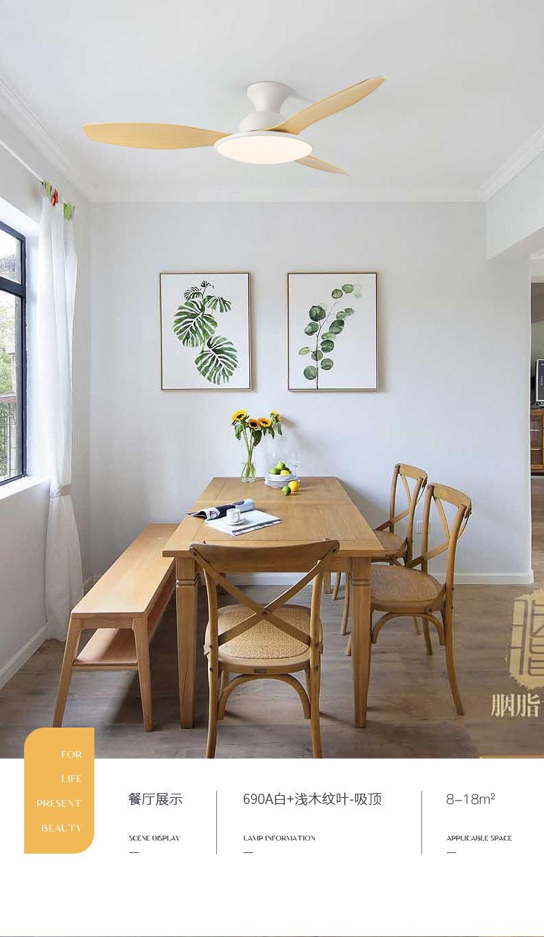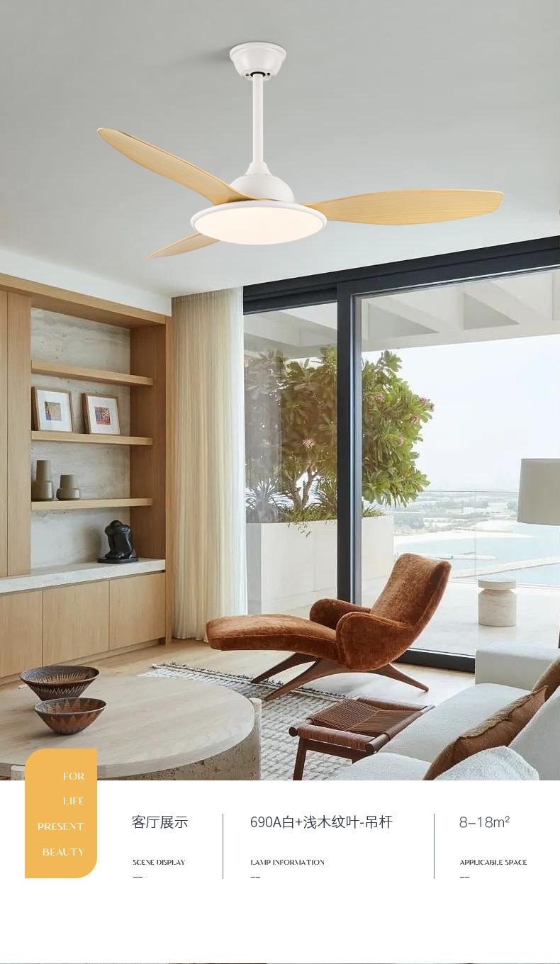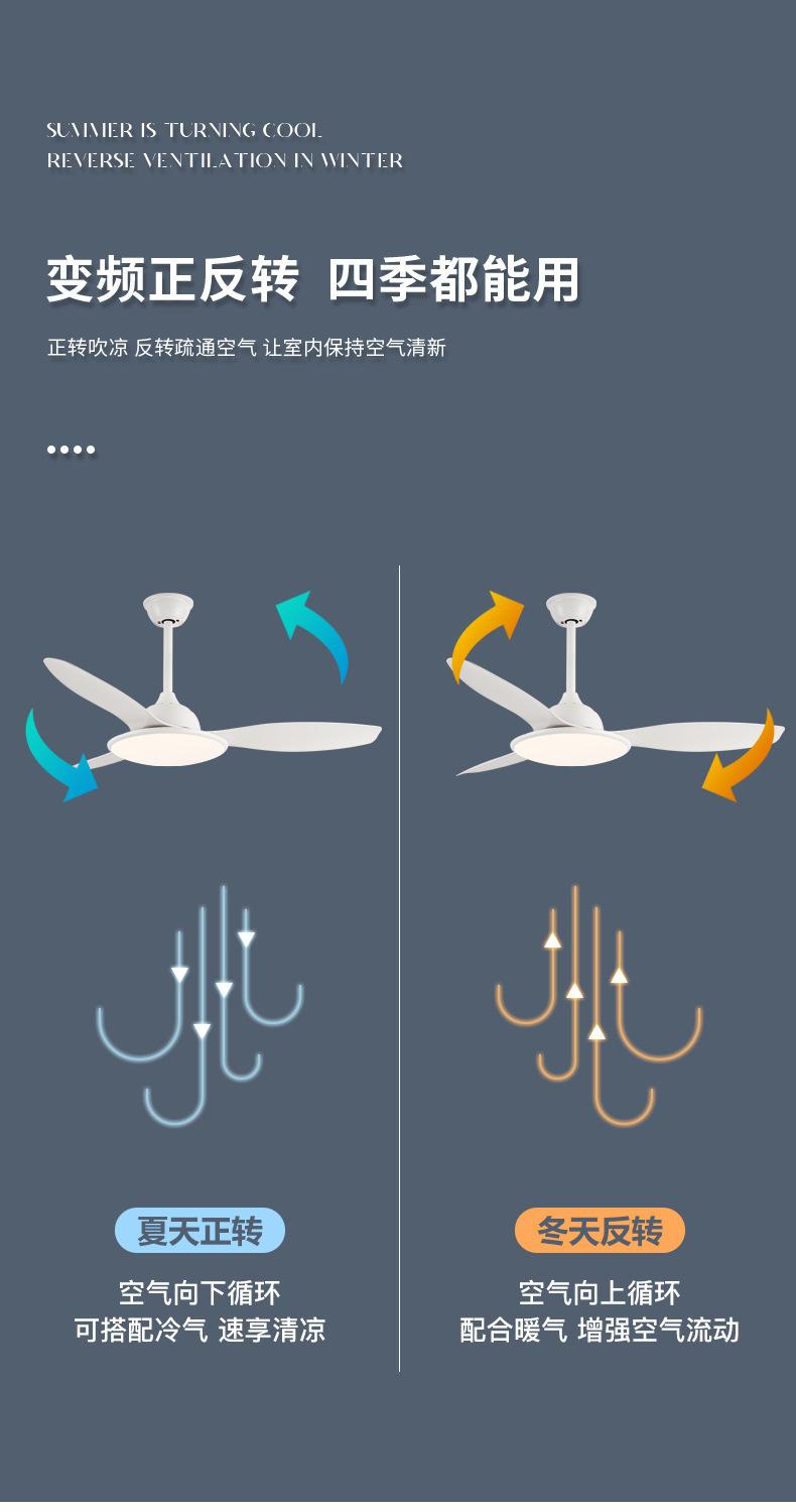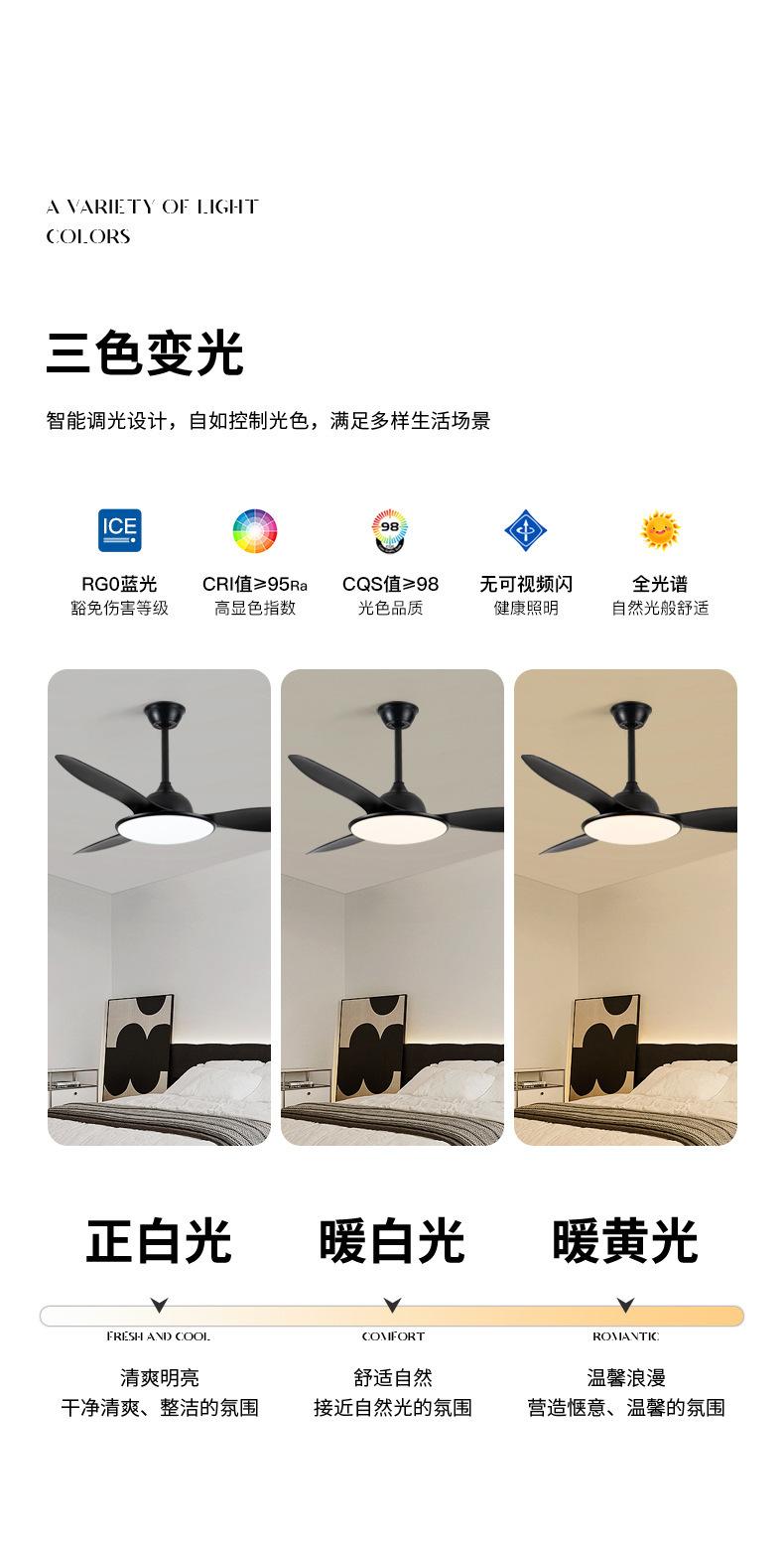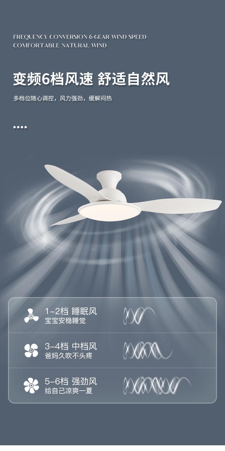 Ventilador de sala de estar de espectro completo, luz de ventilador de techo de frecuencia variable inteligente, luz de ventilador eléctrico silencioso integrado para comedor y dormitorio transfronterizo