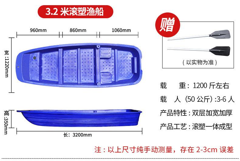 Bote de Pesca Acuático de Plástico de 2m-6m Ensanchado Tendón de Res Pequeño Cría Engrosado Lancha de Tormenta Limpieza de Río Bote de Pesca