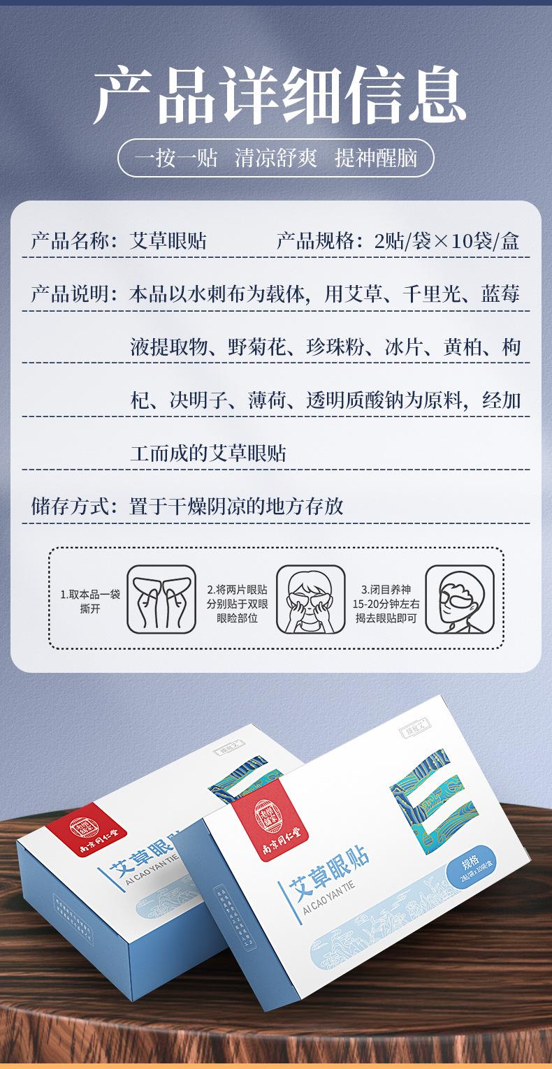 Parche Protector de Ojos para Jóvenes Nanjing Tongrentang para Alivio de la Vista Compresa Fría de Verano Parche para Ojos para Estudiantes Sueño Parche Protector de Ojos de Ajenjo