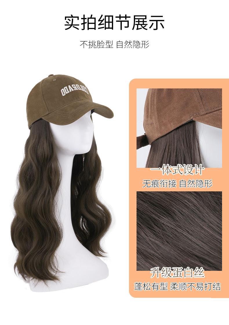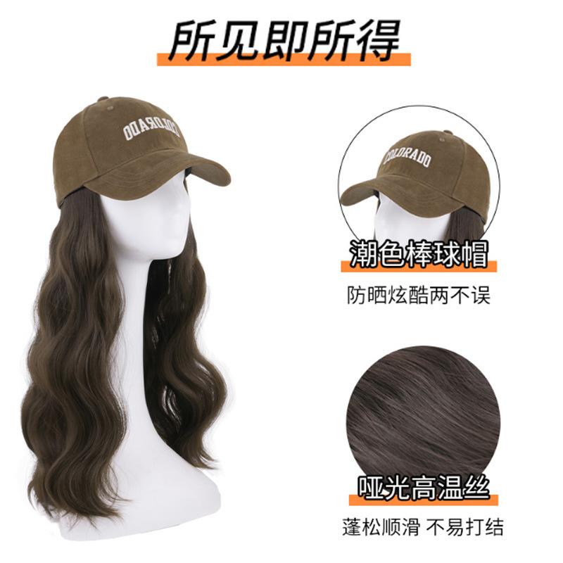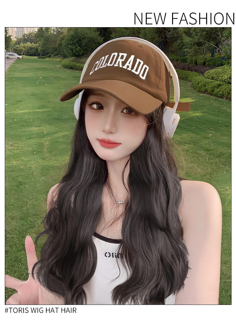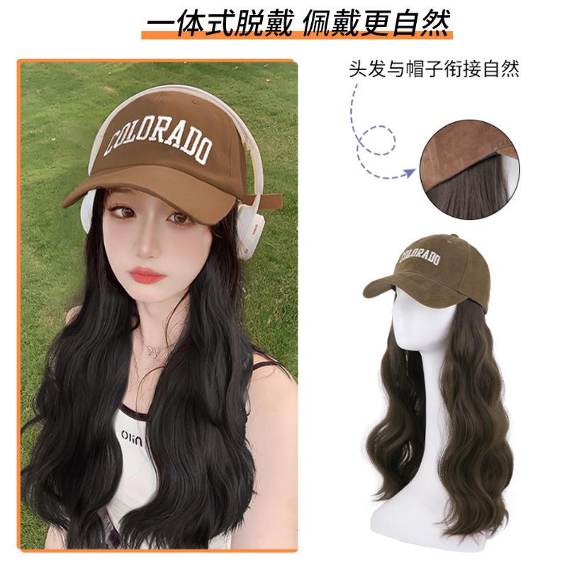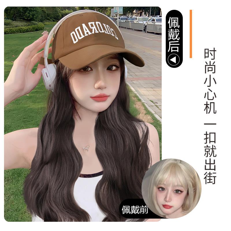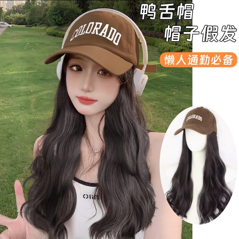 Gorra de Béisbol Transfronteriza de Moda con Peluca Integrada para Mujer, Peluca Sintética de Cabeza Completa Moderna y Versátil