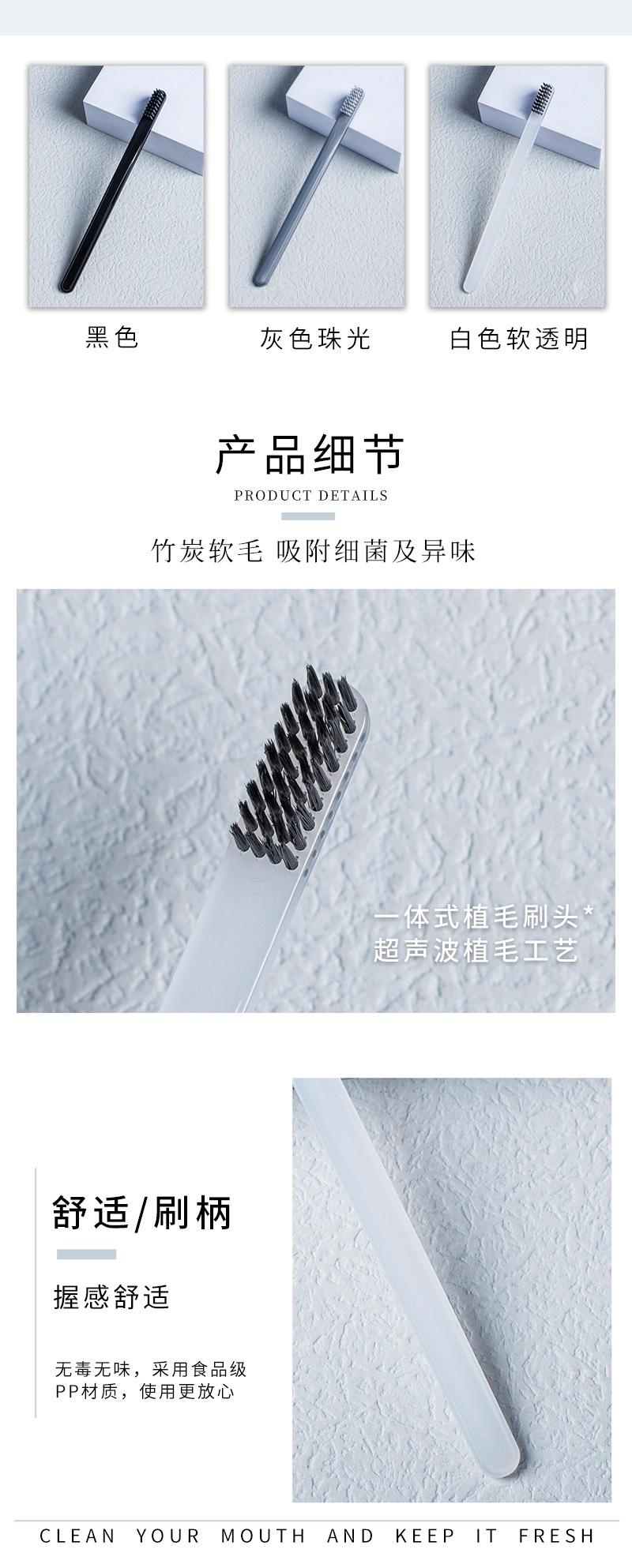 Ylm-ds-05-7.5-straight handle toothbrush-white soft transparent pp material-bamboo charcoal soft bristles