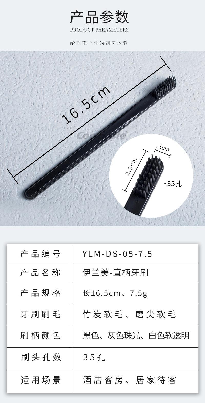 Ylm-ds-05-7.5-straight handle toothbrush-black pp soft material + bamboo charcoal soft bristles, Ylm-ds-05-7.5...