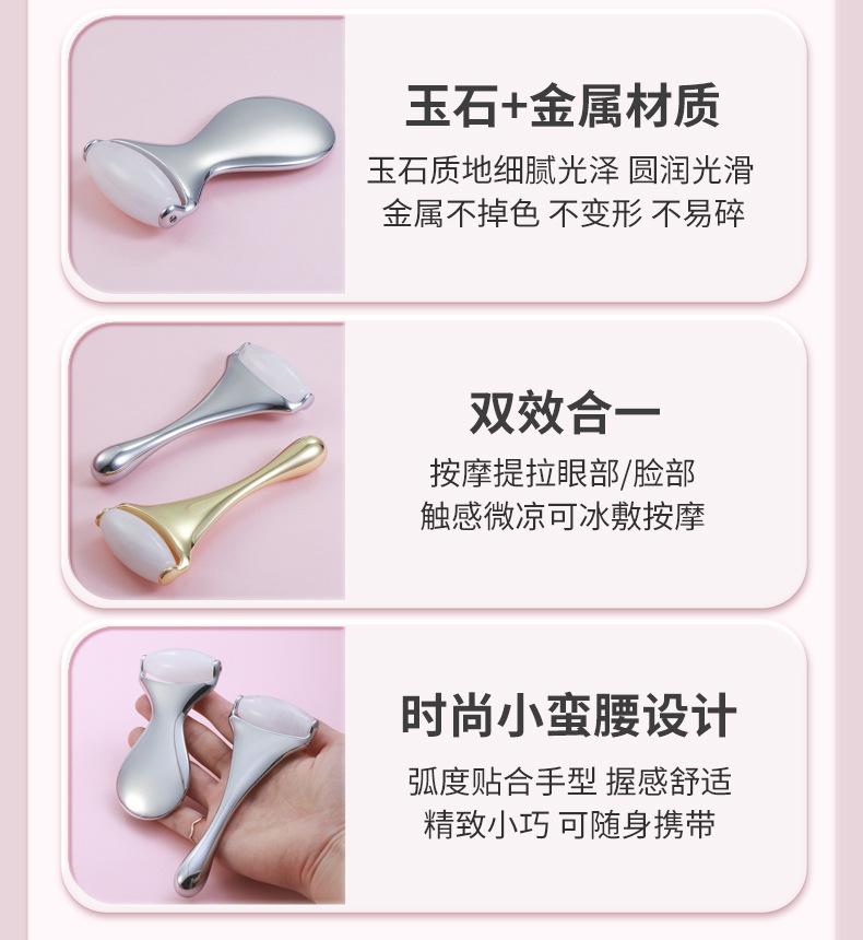 Rodillo de Jade Blanco Palo de Masaje Facial para Ojos Lifting Facial Palo de Belleza Empujar Rostro Rodillo V para Rostro Masajeador Raspado