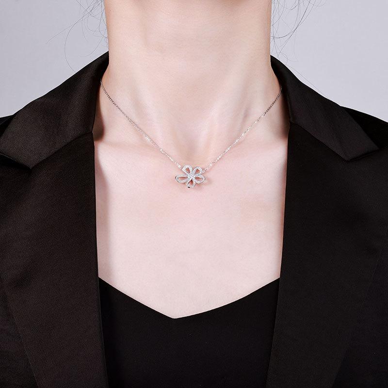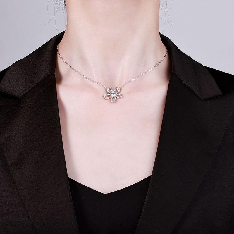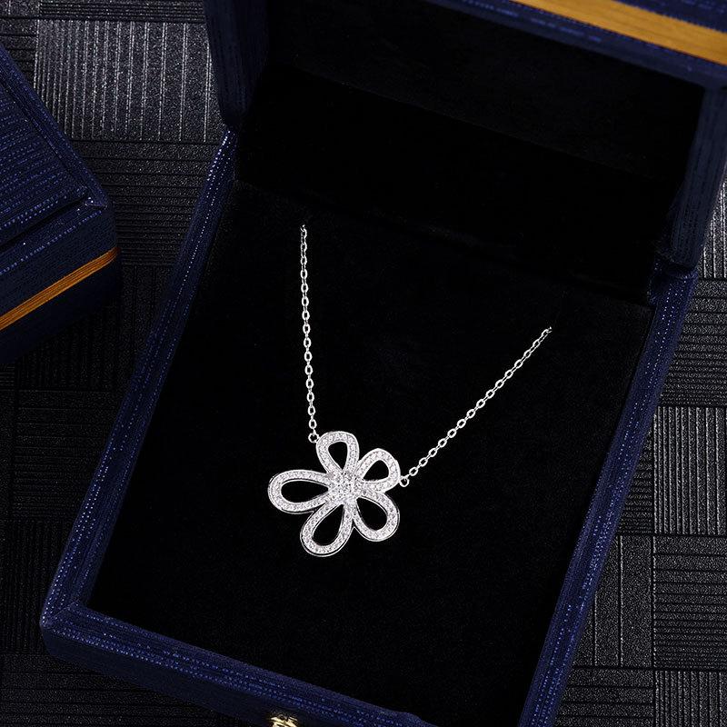 Collar Plata Lujo Ligero Nicho para Mujer Cadena Clavícula Girasol Diamante Completo Celebridad Cibernética Colgante Calado Moissanita Plata Esterlina Flor Camelia