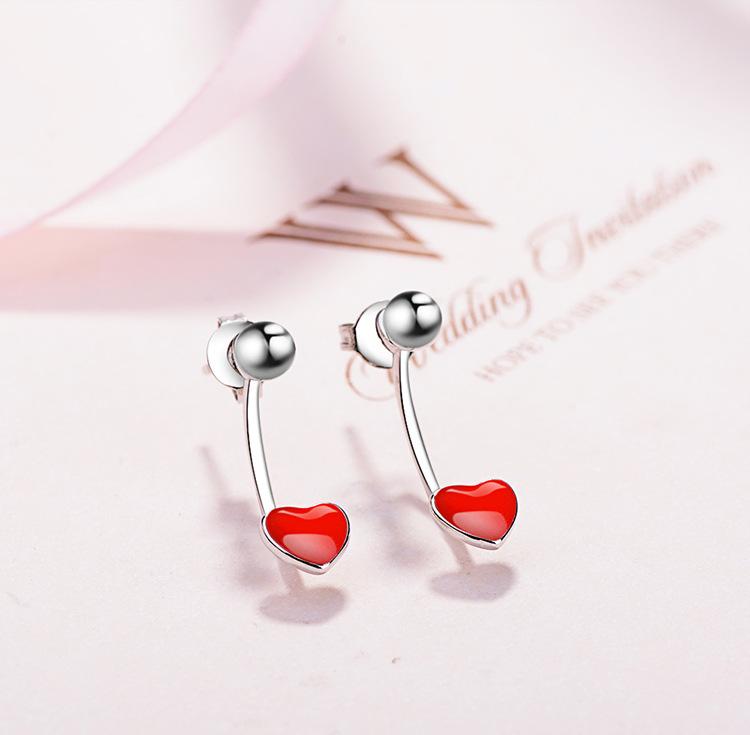 Pendientes colgantes de estilo coreano para mujer, bonitos pendientes de amor, pendientes cortos con forma de corazón rojo, pendientes para mujer