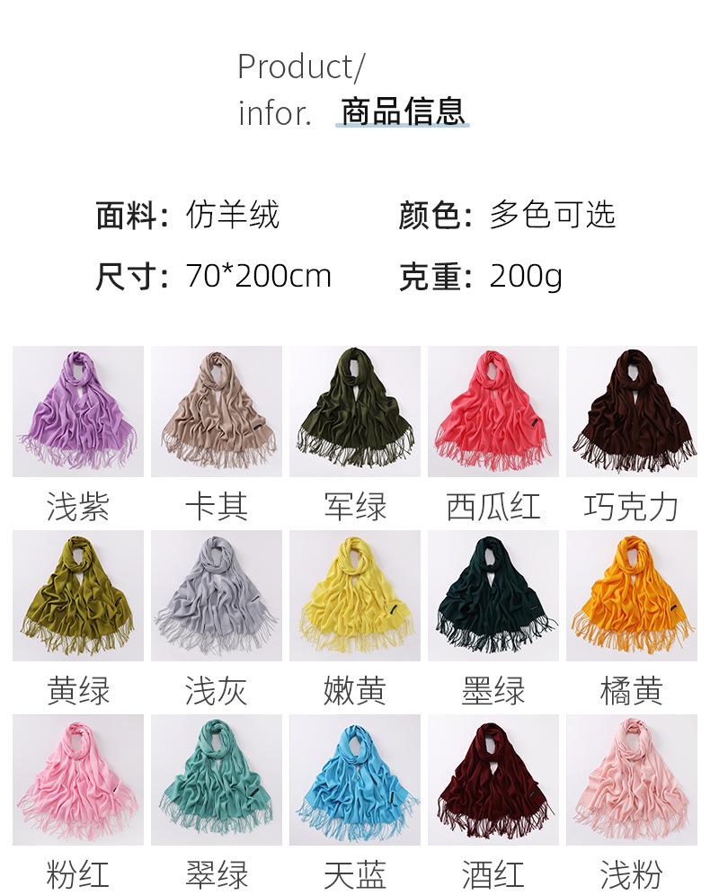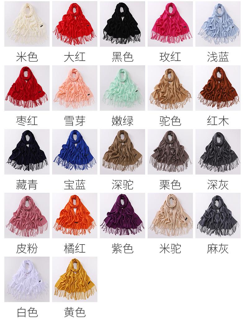 Otoño e invierno una variedad de bufanda de cachemira de color sólido para mujer bufanda chal con flecos cálida gruesa monocromática bufanda roja generación