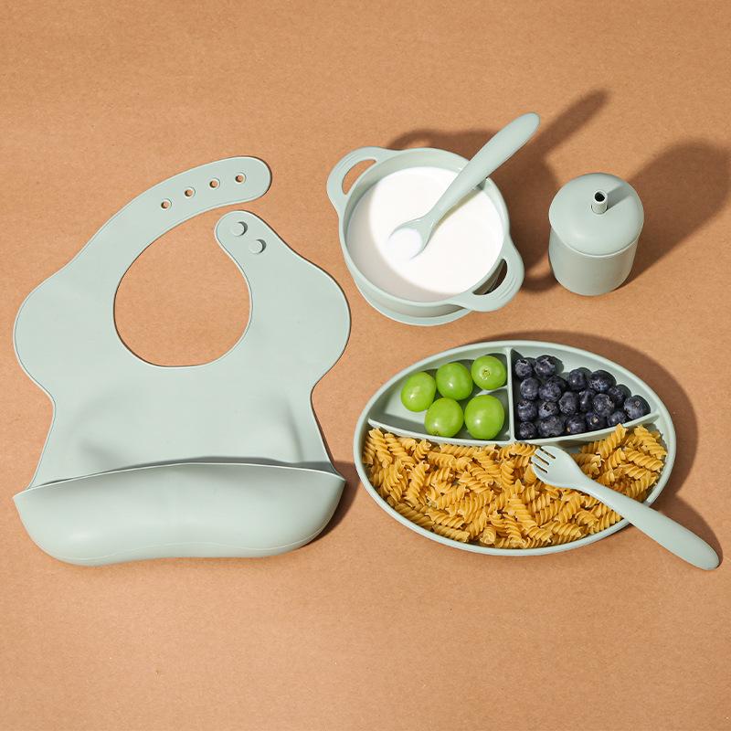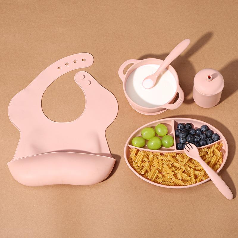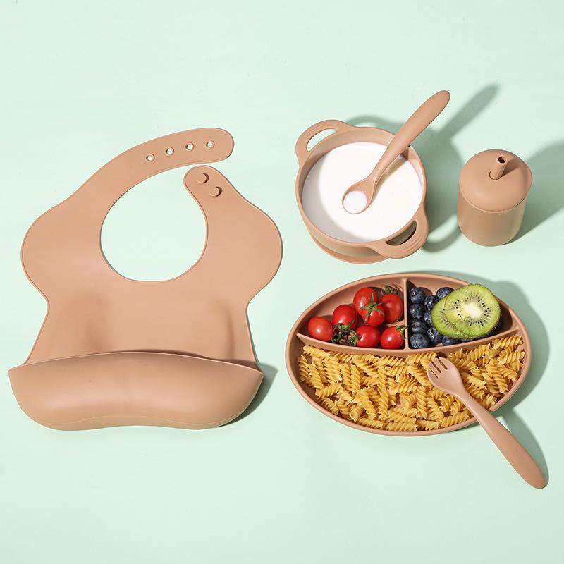 Vajilla de alimentación para bebés, superventas en Amazon, plato de silicona de grado alimenticio, tazón con ventosa para alimentos infantiles, juego para madre y bebé.