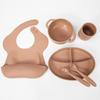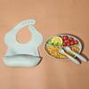 Separated plate + fork spoon + Bib + brim bowl + Cup Curry color