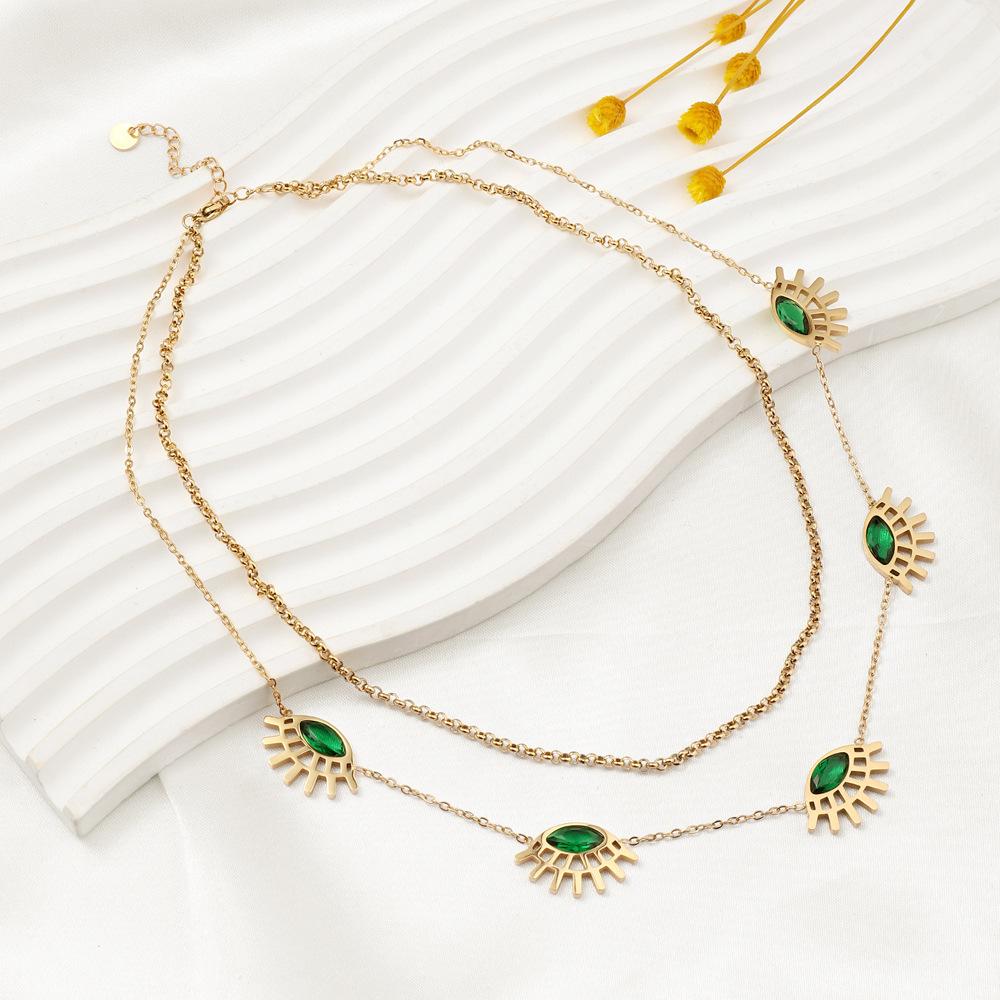 Pulsera de moda transfronteriza para mujer, collar de diamantes de alta calidad para combinar con todo, pulsera de flores de circonita esmeralda, joyería de acero de titanio de fábrica