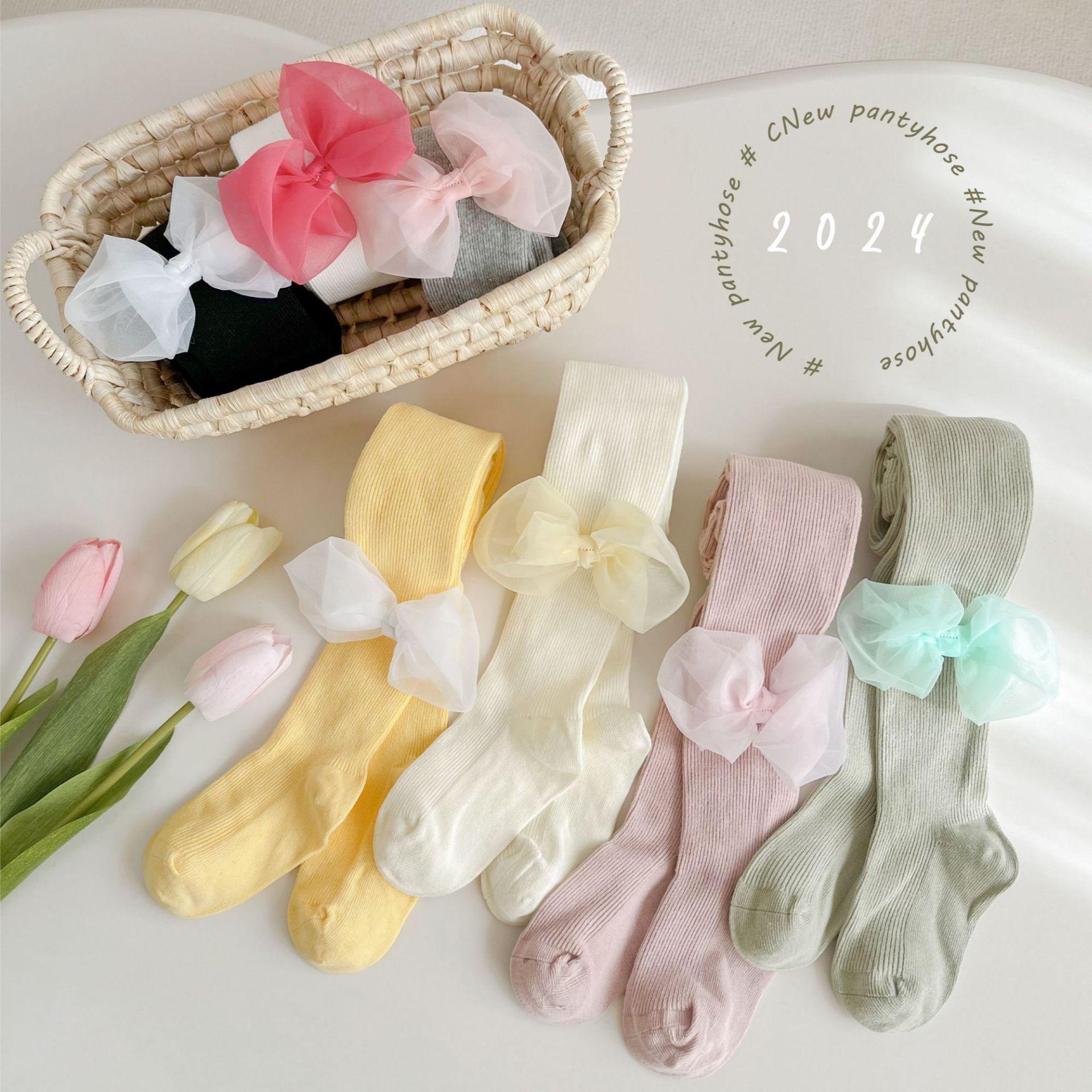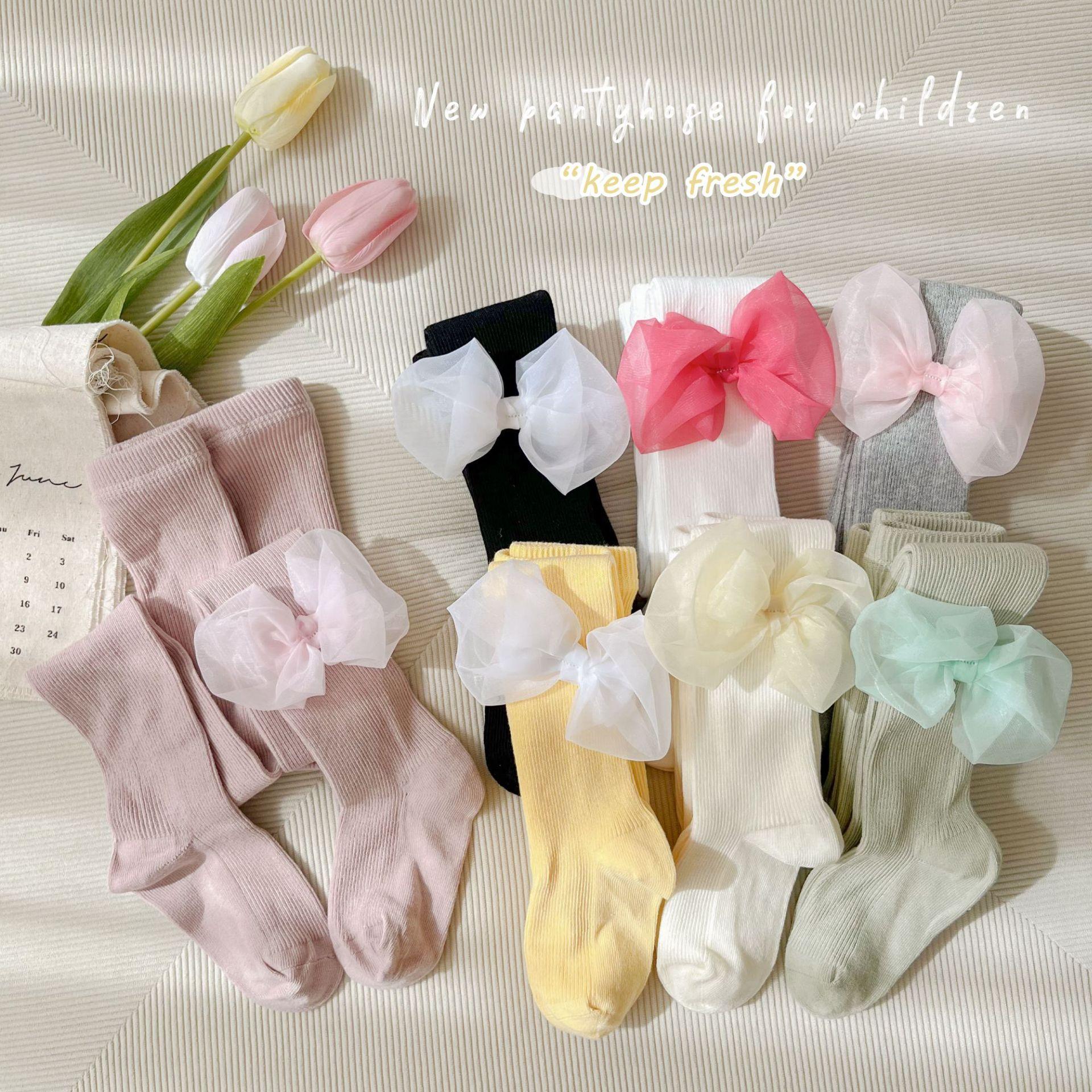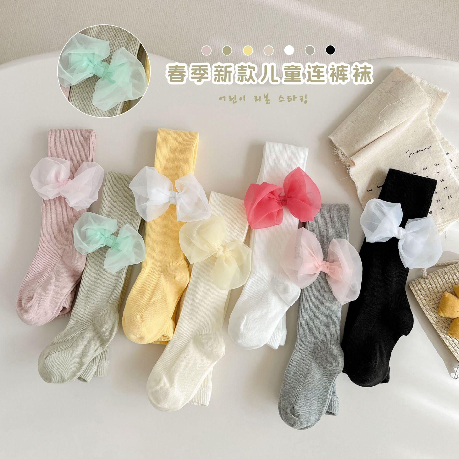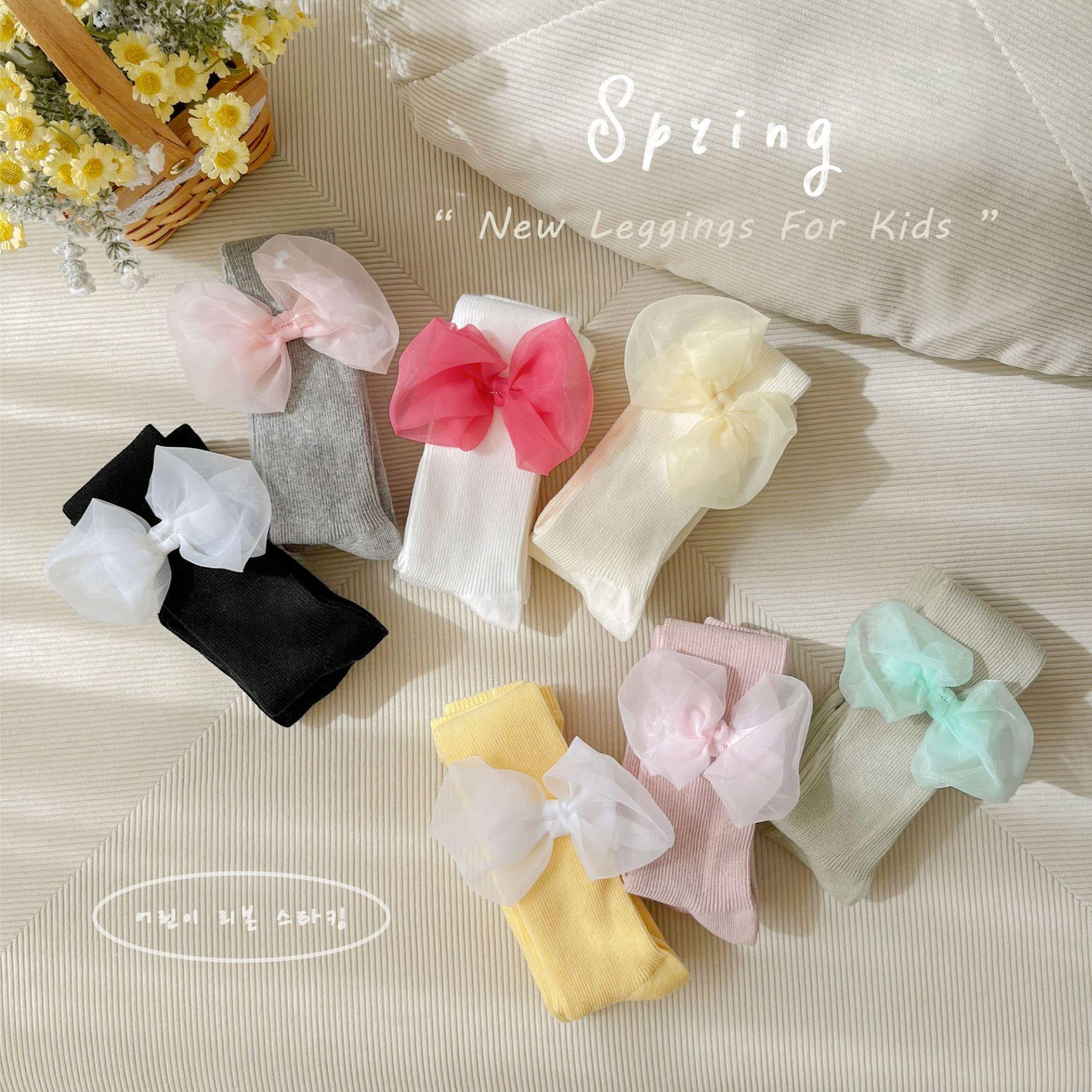 Leggings para niños, primavera y otoño, pantimedias de algodón para niñas, estilo coreano, estilo occidental, con lazo, ropa exterior blanca para bebés, leggings, calcetines