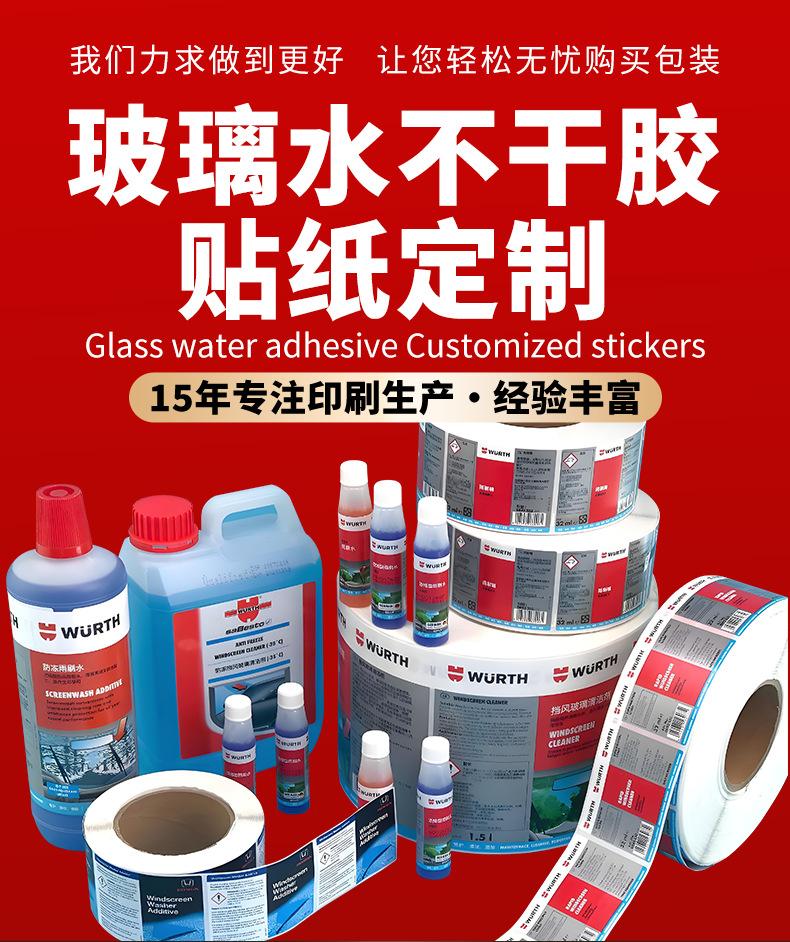 Etiqueta Adhesiva Impresa Etiqueta de Agua de Vidrio Papel Estucado Autoadhesivo Película de Recubrimiento Hot Stamping Plata Agua de Vidrio Autoadhesivo Personalización