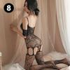 Lencería sexy Love Ruo, calcetines de una pieza, encaje de corte bajo y hueco, abiertos, ajustados, moldeadores, de una pieza, seda negra 8