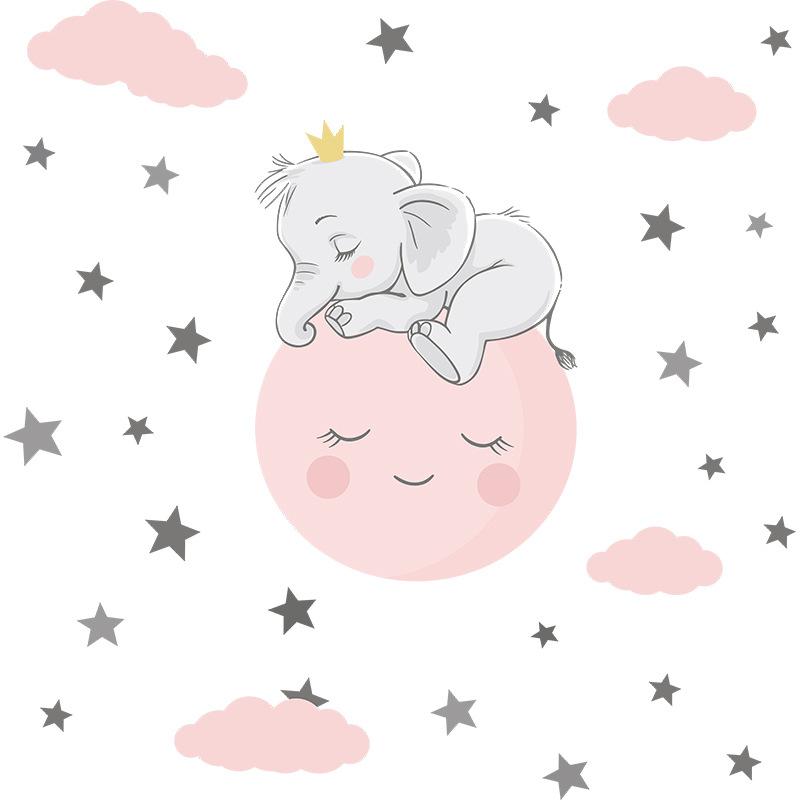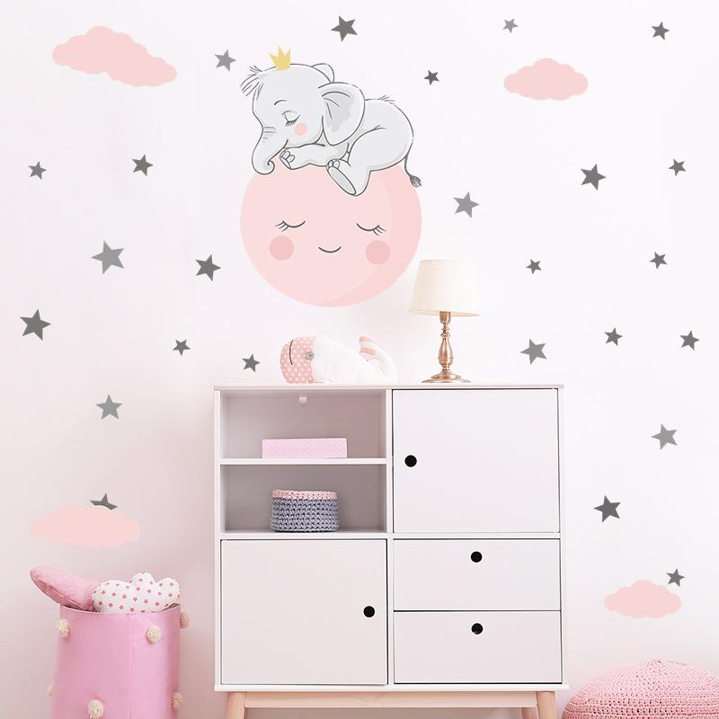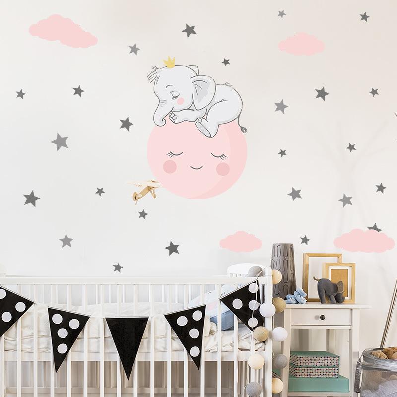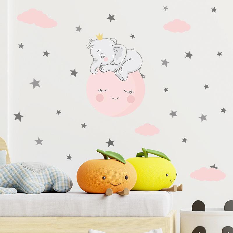 Compra FX-D309 Elefante de Dibujos Animados Luna Estrellas Nubes Buenas Noches Dormitorio Infantil Jardín de Infancia Adhesivos de Pared Decorativos al por mayor en Joom.pro