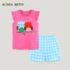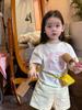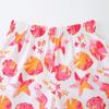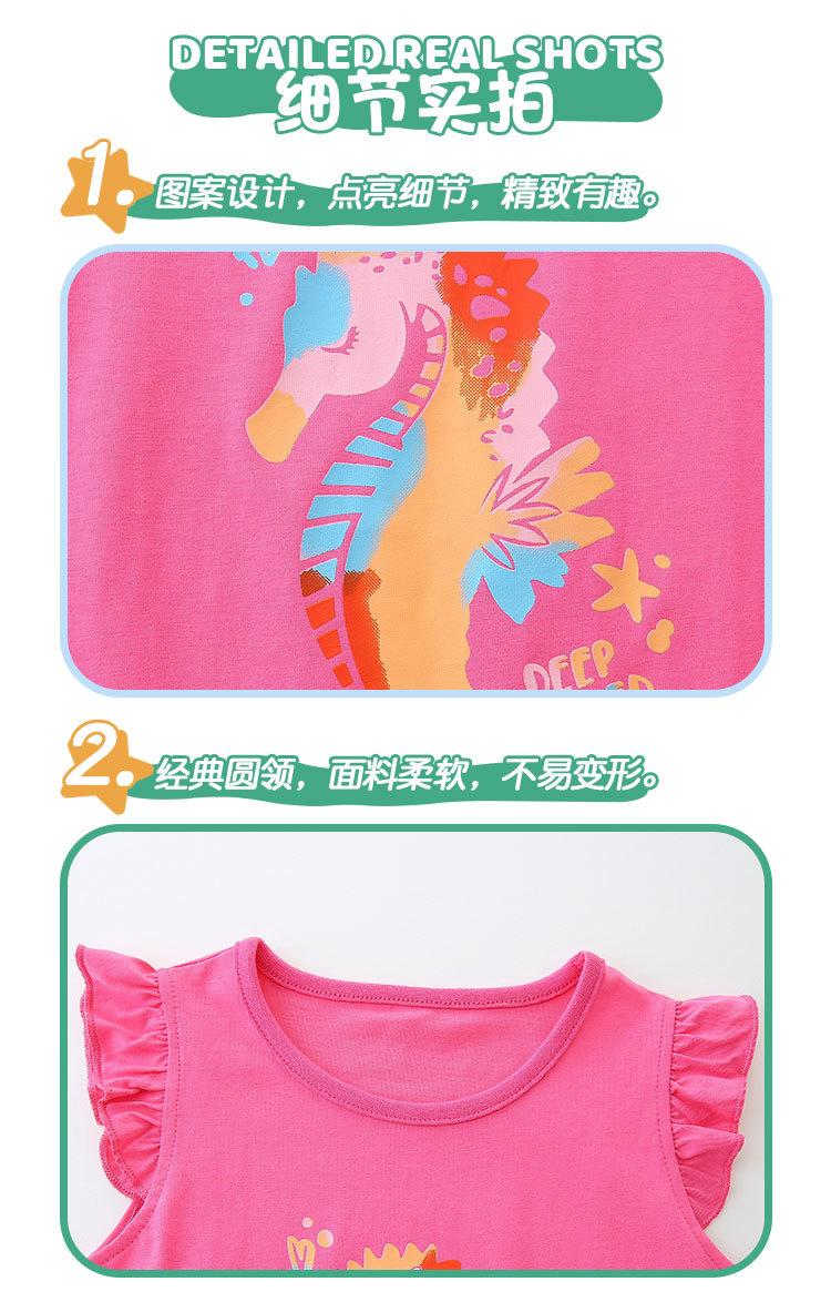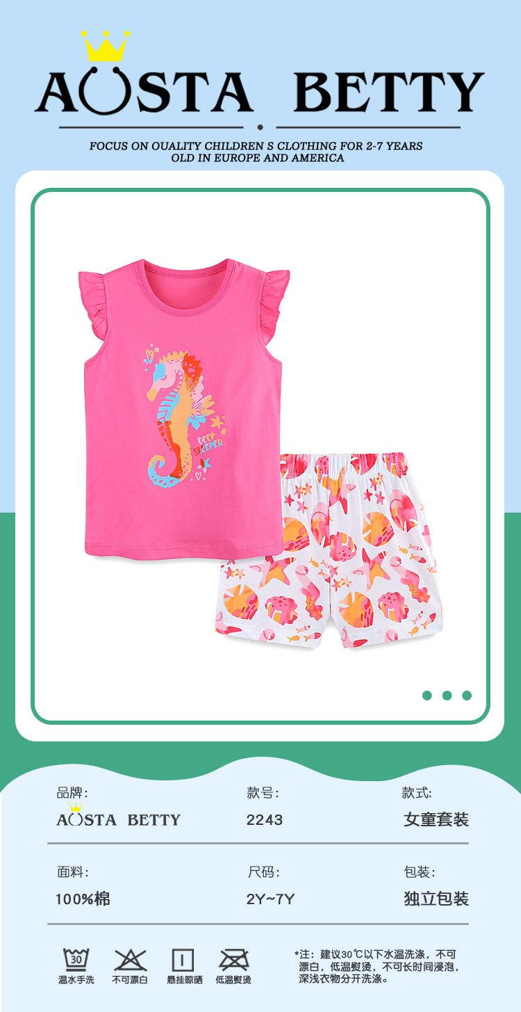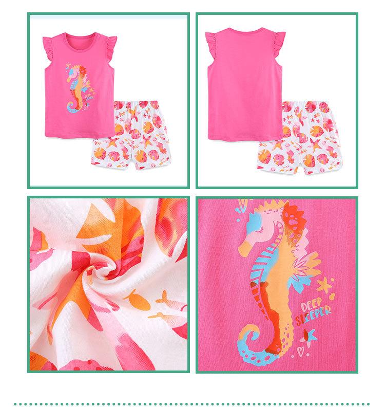 Verano Nuevo Traje de Manga Corta para Niñas Estilo Europeo y Americano Dibujos Animados para Niños Top Estampado de Caballito de Mar Shorts Conjunto de 2 Piezas