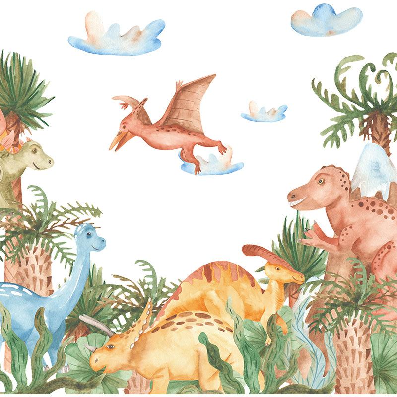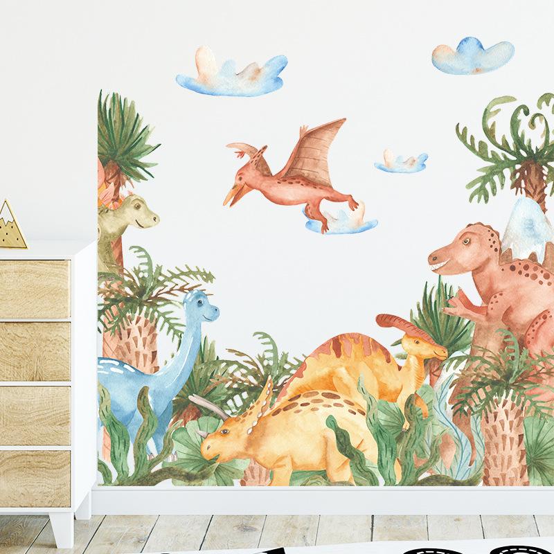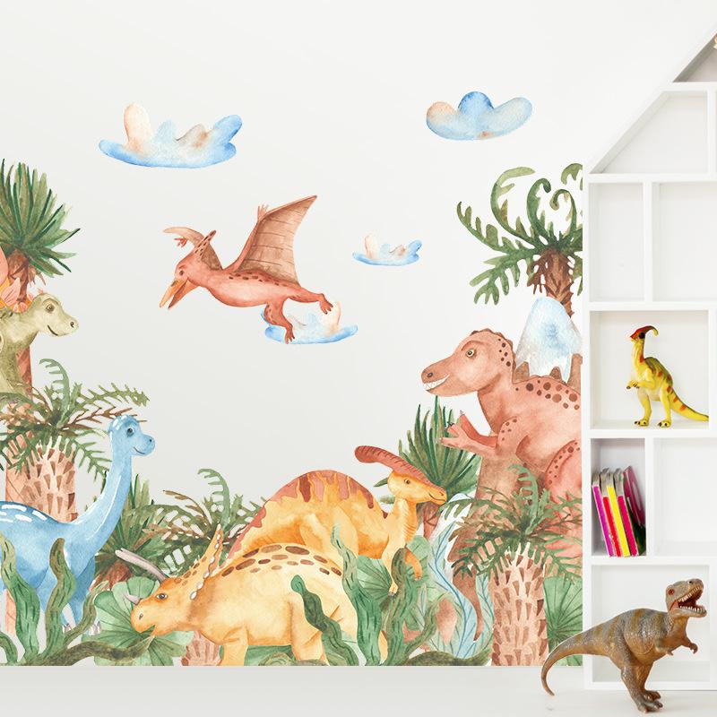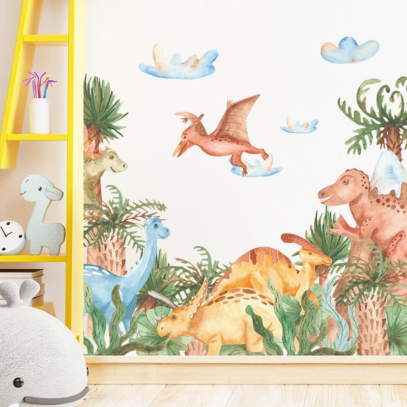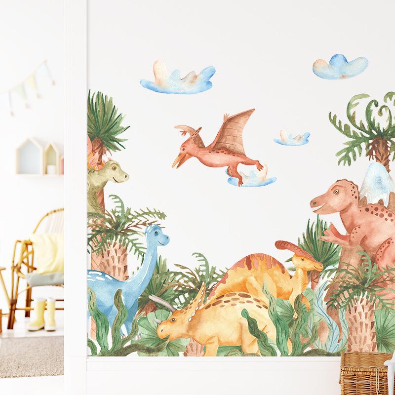 FX-C268 grupo de dinosaurios de dibujos animados planta verde tropical Nube habitación infantil jardín de infancia decoración de pared para el hogar pegatina de pared