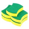 Es un producto hecho de un estropajo (fibra de poliéster) adherido a una esponja. Un lado del estropajo es rugoso, adecuado para limpiar suciedad difícil de limpiar. El otro lado de la esponja es suave y no dañará la superficie de los utensilios de cocina. Al combinarse entre sí, se puede limpiar fácilmente la vajilla. Los estropajos de esponja también tienen muchas cualidades. Las esponjas de alta densidad tienen buena resistencia a la tracción, buena elasticidad y durabilidad. Cuando se combinan con estropajos adheridos (estropajos que contienen arena), se convierten en productos de alta gama y prácticos. General Una esponja con una densidad superior a 22 se considera buena. Una esponja de mala calidad se deformará y se desgomará cada dos usos. Por lo tanto, hay productos buenos y malos.