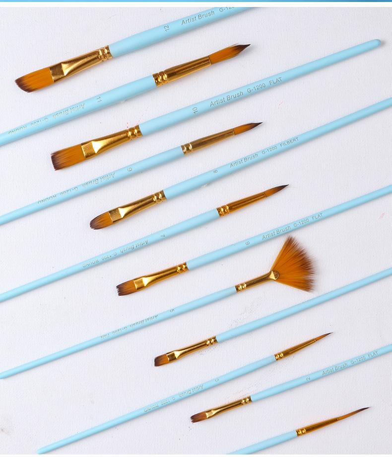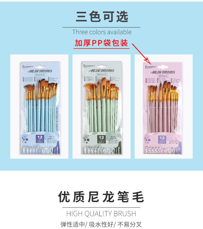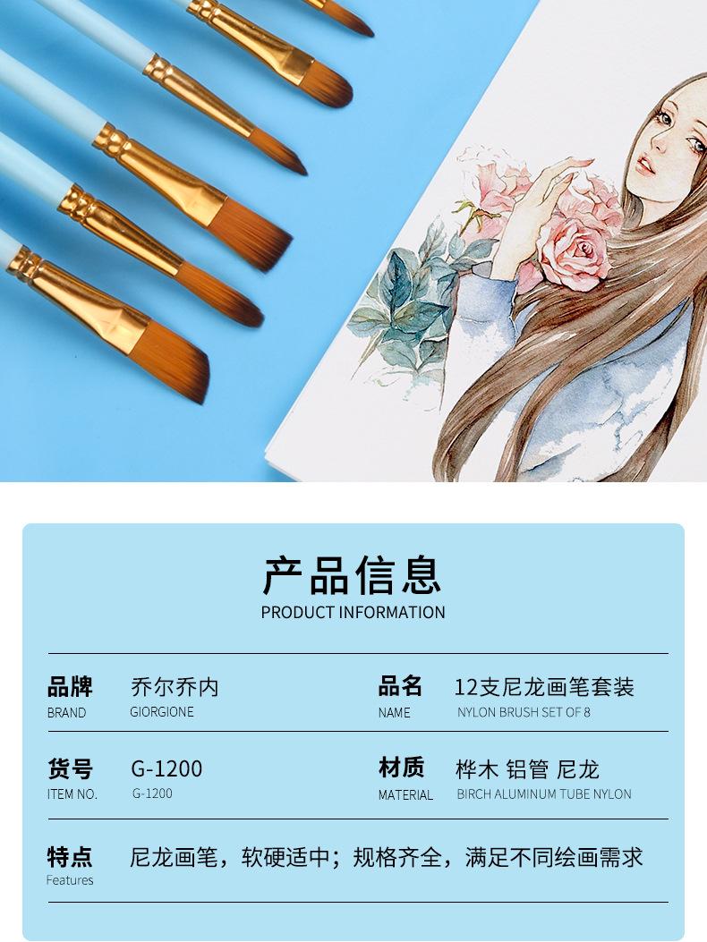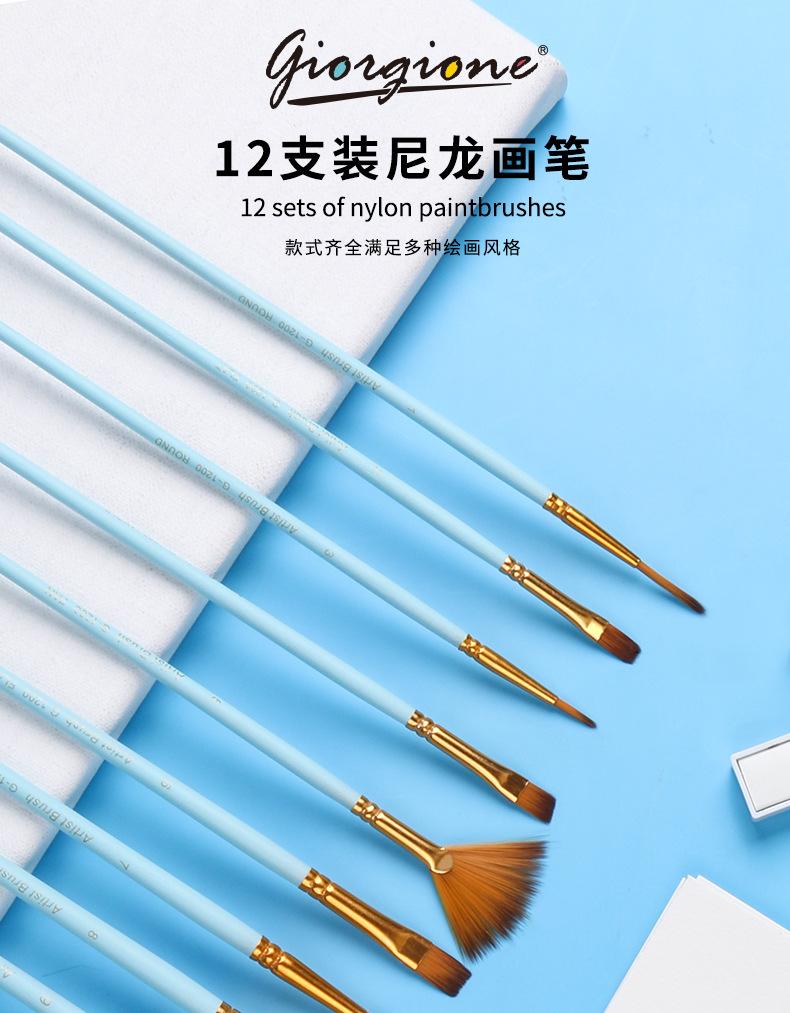 Giorgione - Juego de 12 pinceles de nailon para acuarela, serie Bird, de PVC, con bolsa suave y varilla de abedul y borde cruzado.