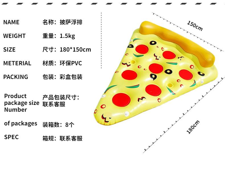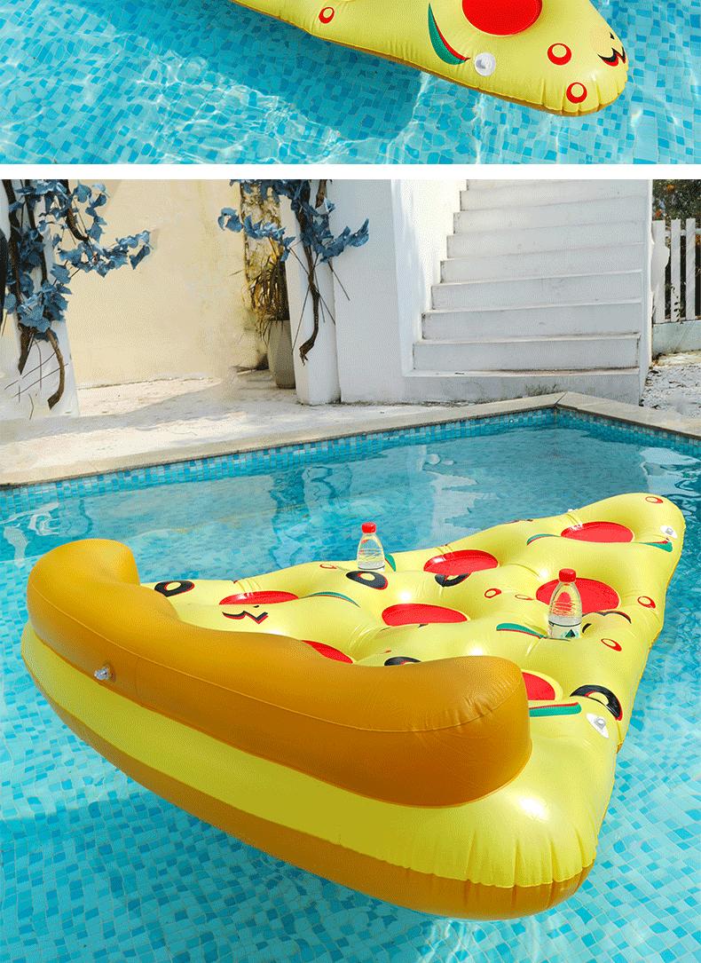 Flotador inflable transfronterizo de pizza, cama flotante de PVC para adultos, reclinable acuático, entretenimiento, cama flotante, soporte Queen, boya de anillo de natación plegable