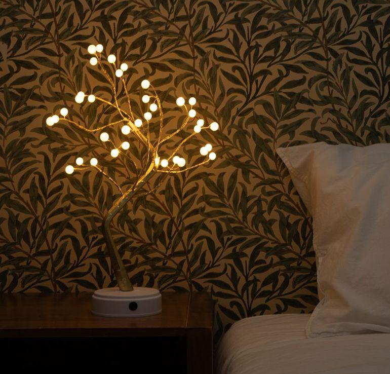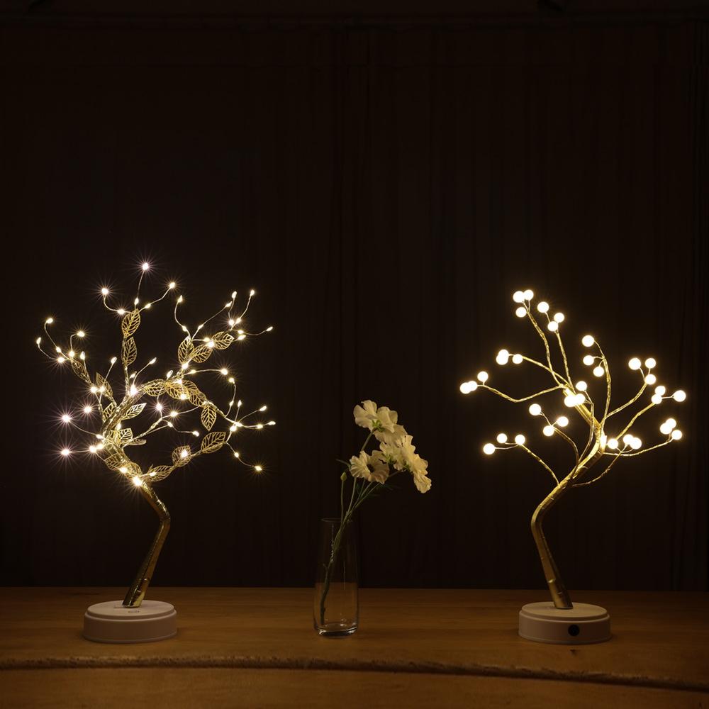 Lámpara decorativa LED de alambre de cobre con forma de árbol de perlas, luz nocturna estrellada, decoración para dormitorio, Amazon.