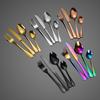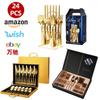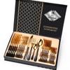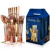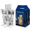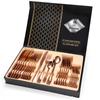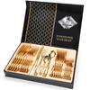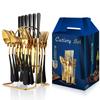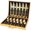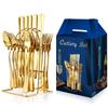 Juego de cubiertos de 24 piezas de acero inoxidable con cuchillo, tenedor y cuchara, estante de almacenamiento para el hogar, caja de regalo dorada.