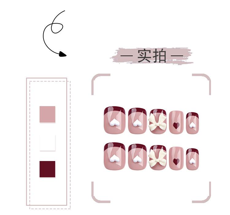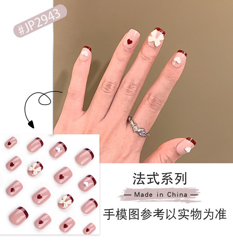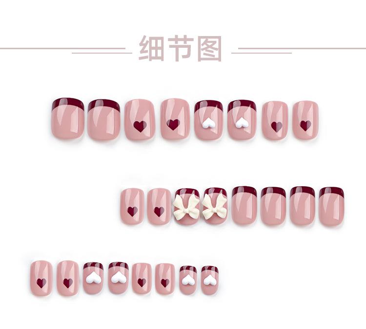 Parche de uñas con lazo de amor francés para usar en rojo, uña corta y dulce, uña postiza al por mayor