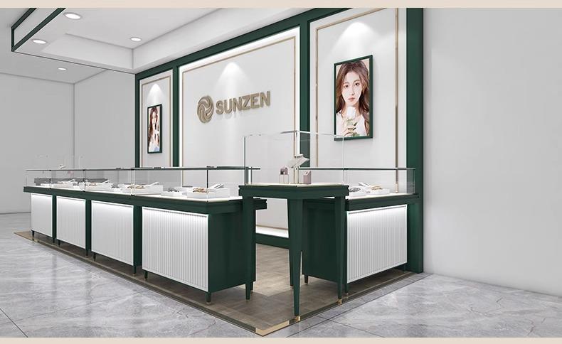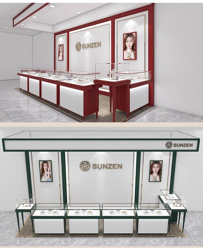 Vitrina de joyería con diseño de tienda completa, vitrina de joyería con diamantes de perlas, vitrina de acero inoxidable con vidrio templado Super White