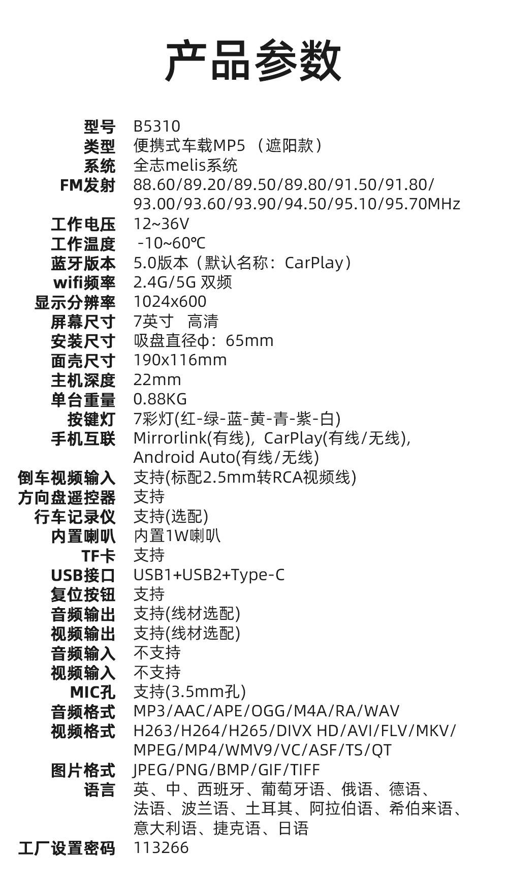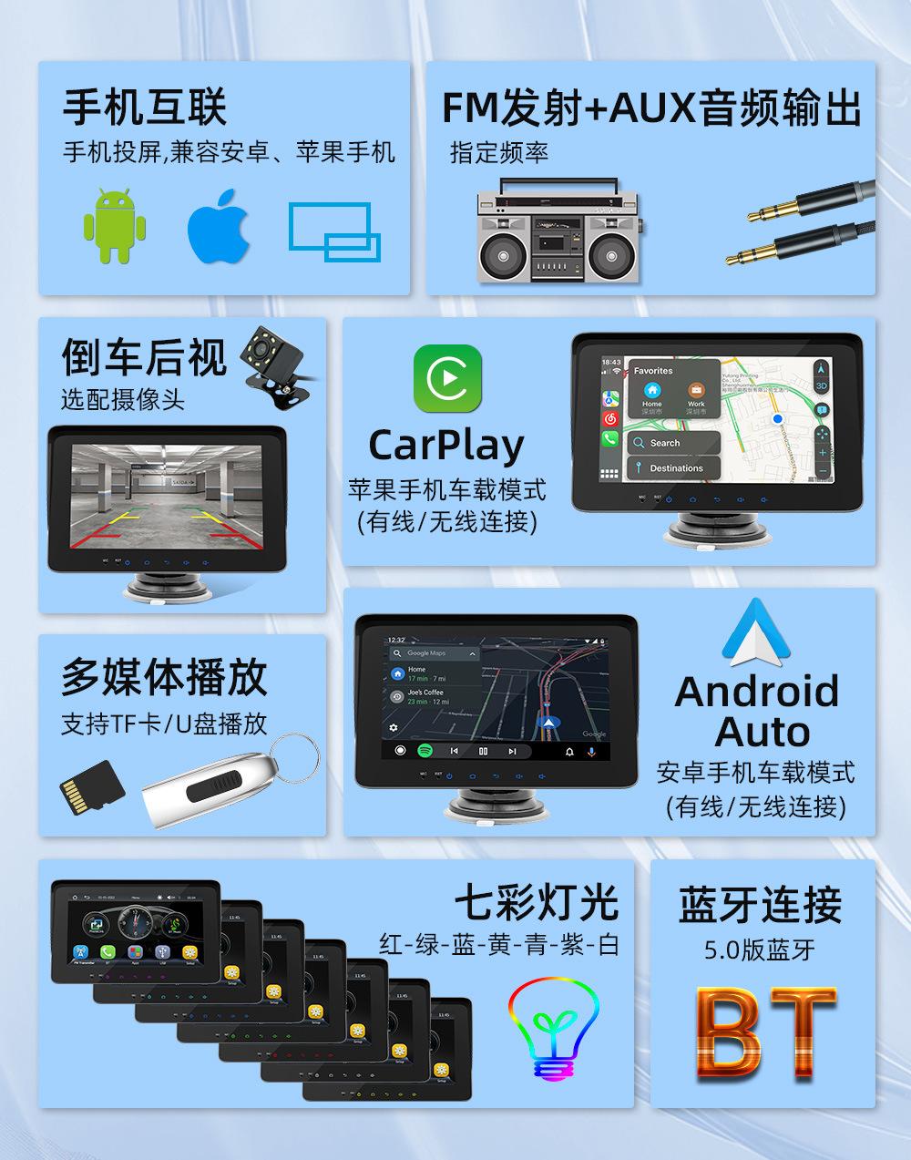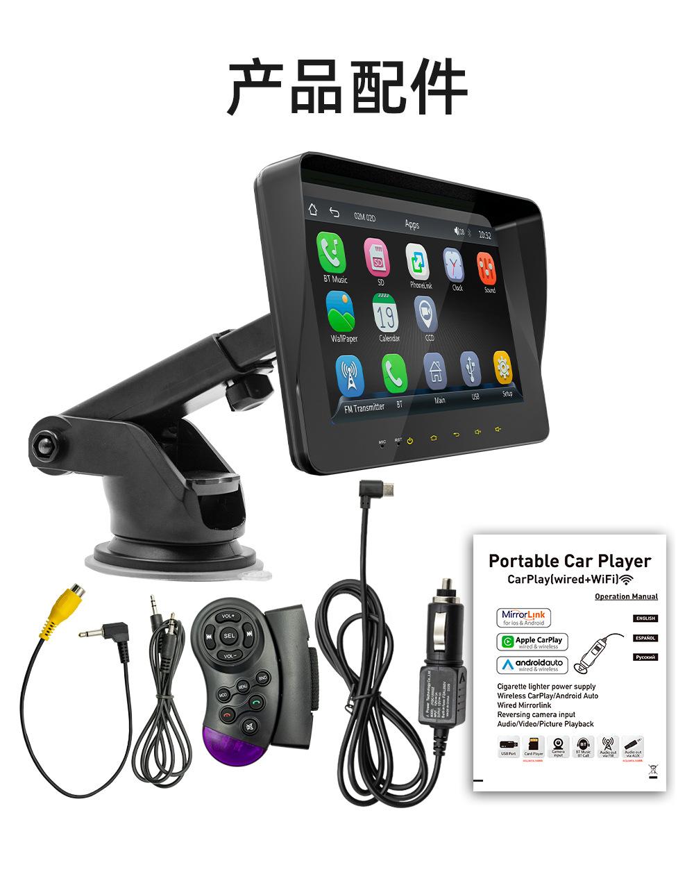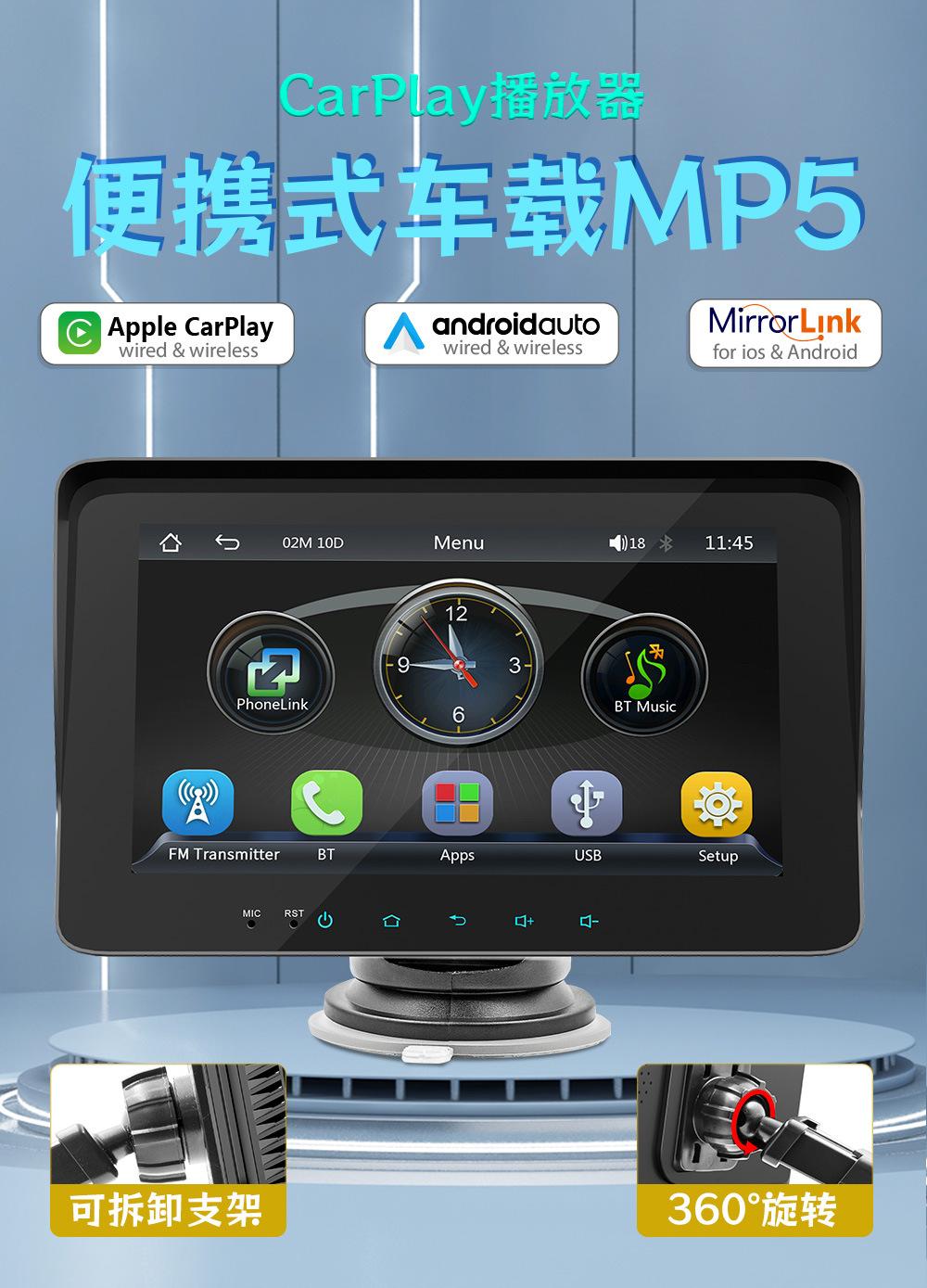 Reproductor MP5 Bluetooth para coche con pantalla grande CarPlay inalámbrico de 7 pulgadas, imagen HD de marcha atrás, navegación PND para coche