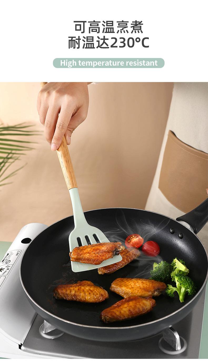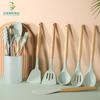 Gray wooden handle 12-piece set-with bucket Silicone kitchenware 11-piece set + storage bucket (color box)
