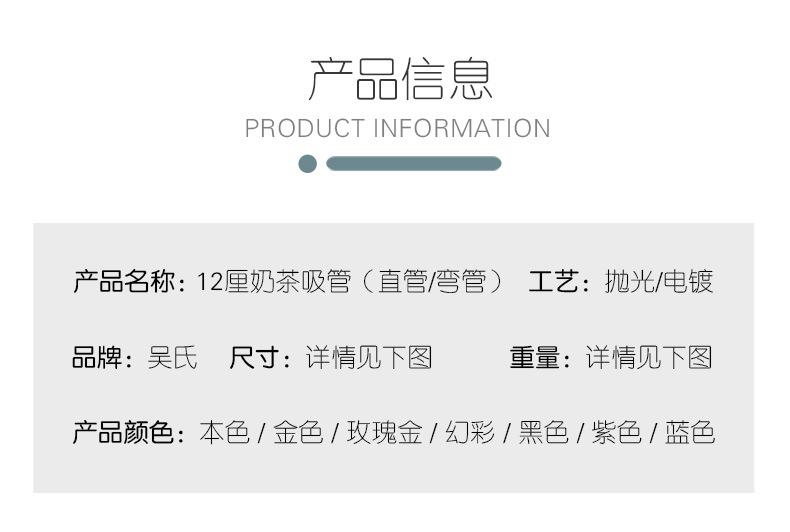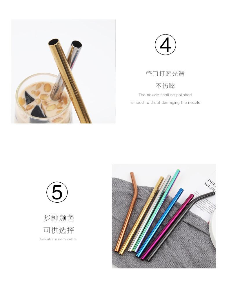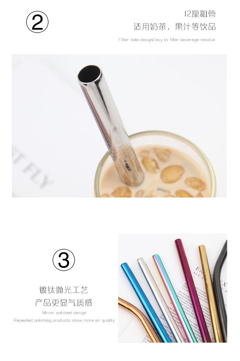 Pajita de acero inoxidable 304 para té con leche, color titanio, tubo recto, para restaurante, bebida, café, leche, té, pajita de metal
