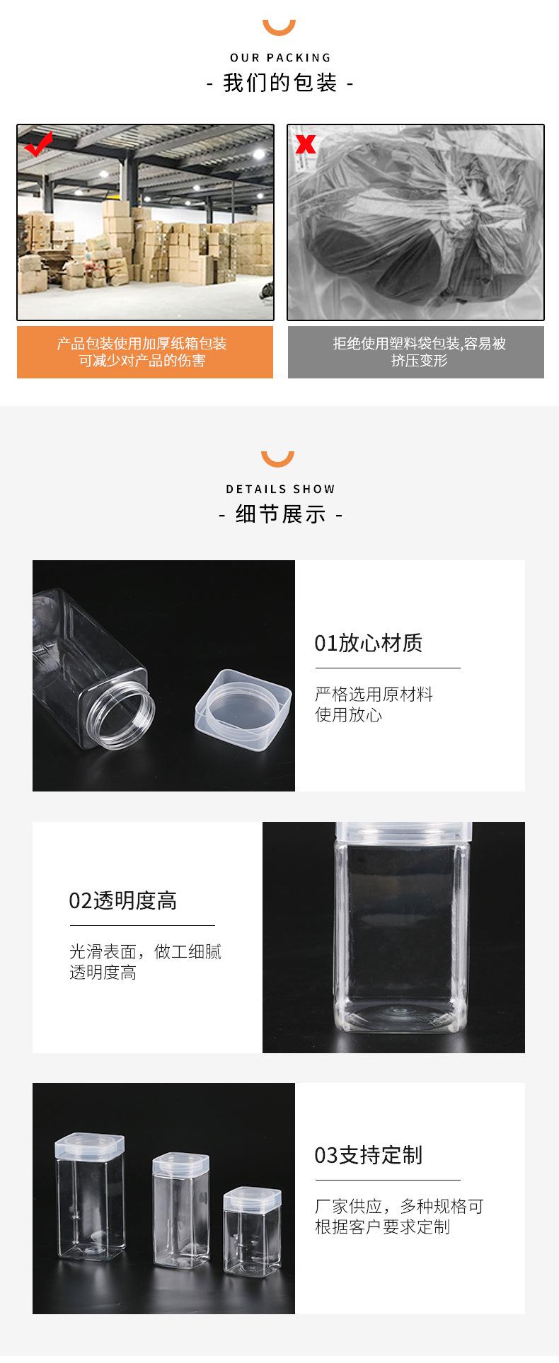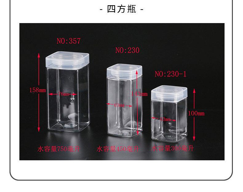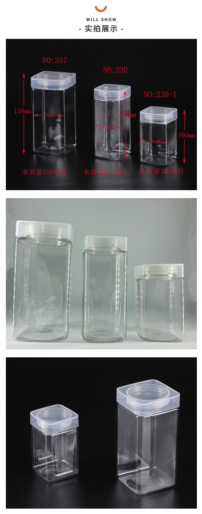 Fabricantes de Taizhou latas transparentes cuadradas personalizadas para alimentos con tapa botella sellada de boca ancha de gran capacidad grande favorablemente