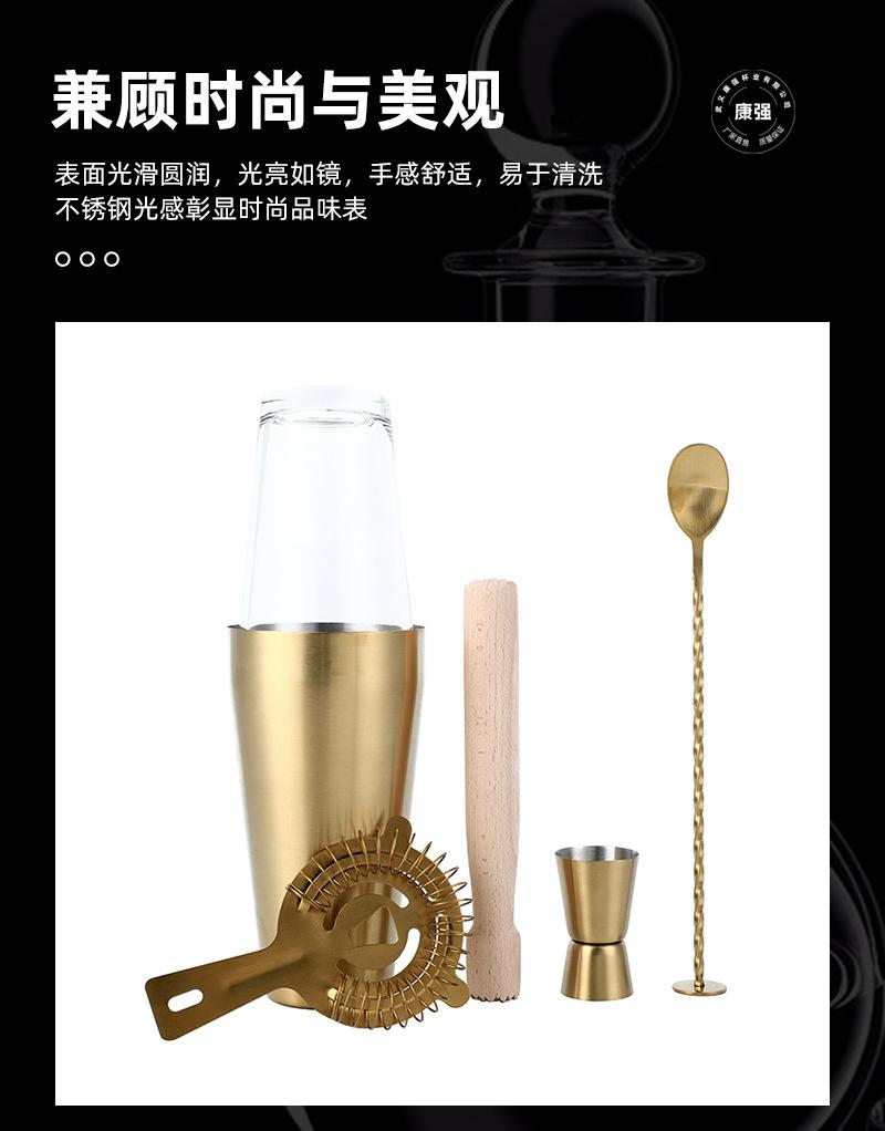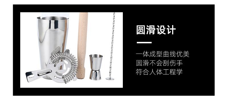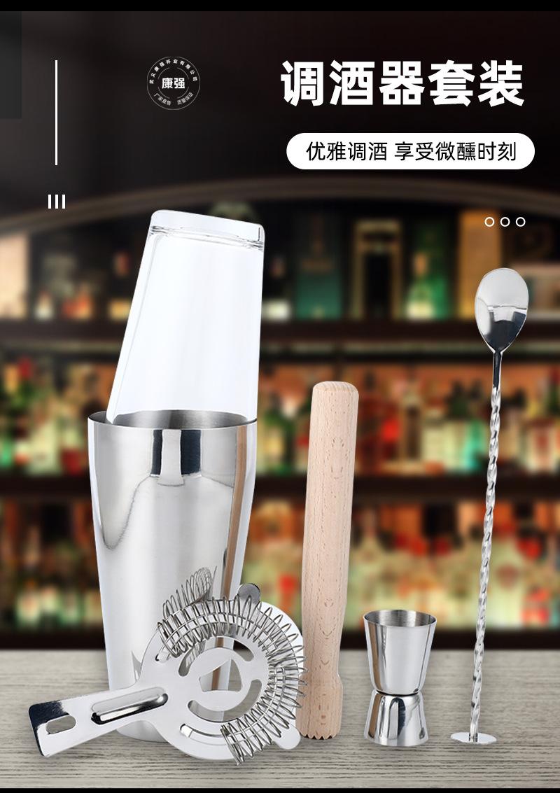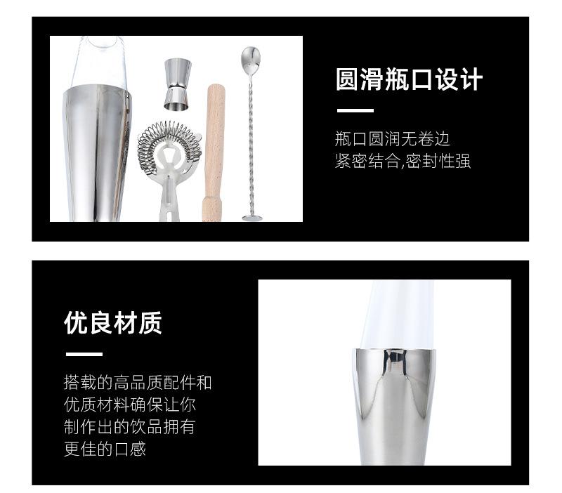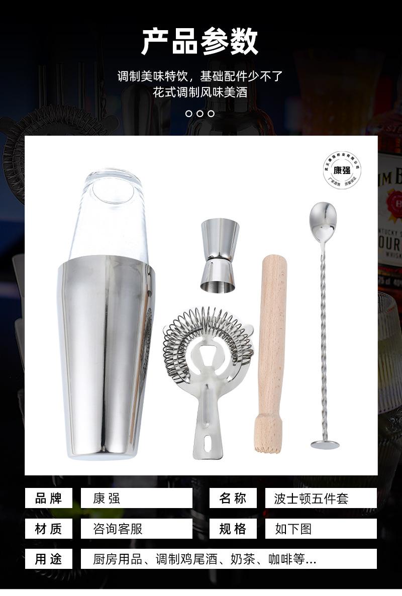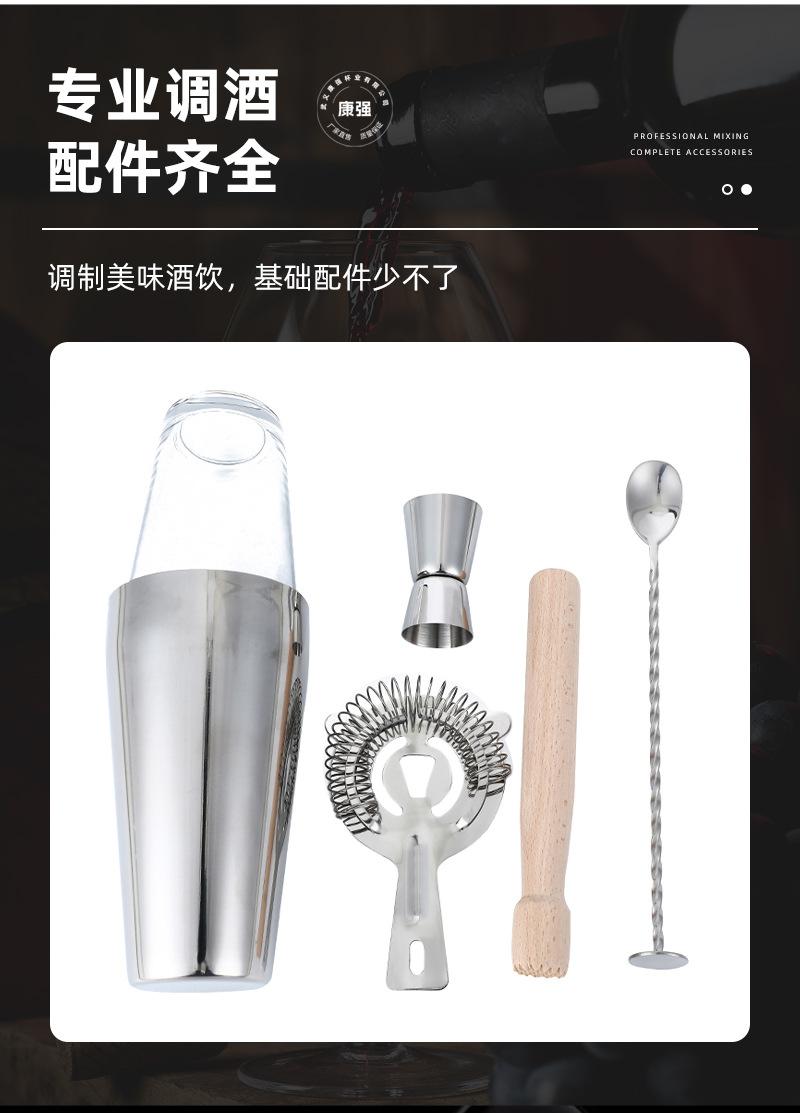 Juego de cinco piezas Boston de acero inoxidable, coctelera, vaso y juego de suministros para bar