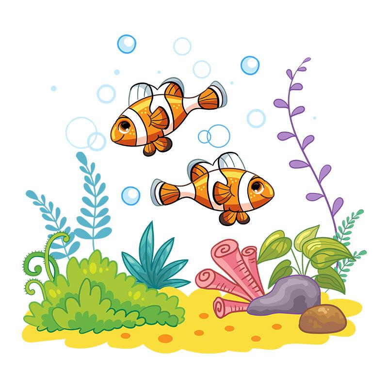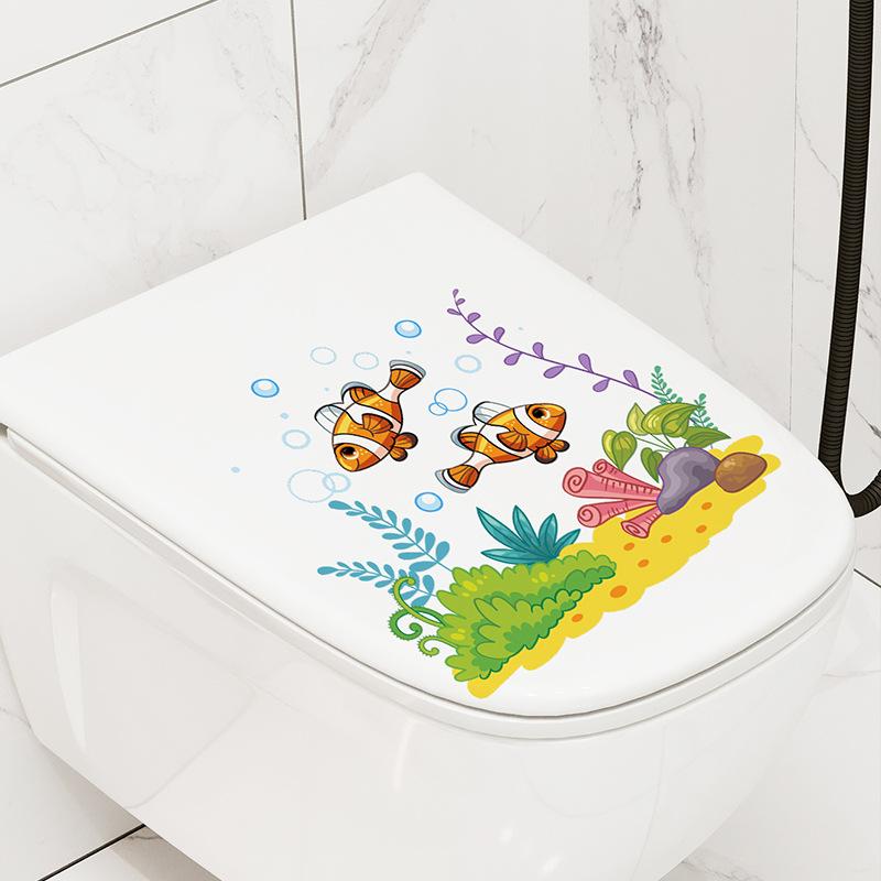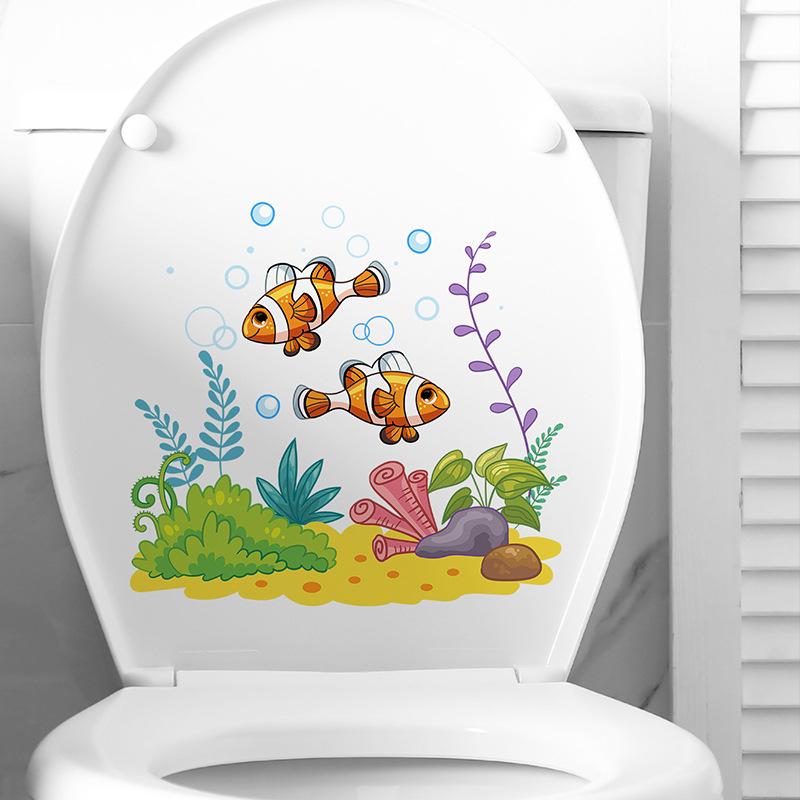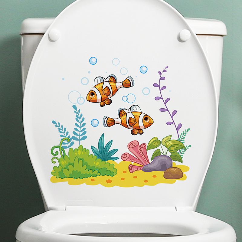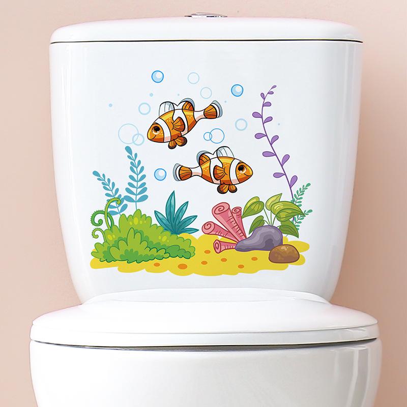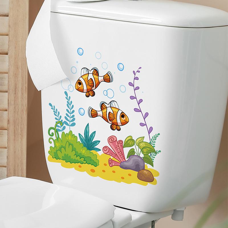 M-277 Dibujo Animado Peces Submarinos Algas Marinas Pegatinas de Baño Inodoro Decoración del Hogar Embellecimiento Pegatinas de Pared Autoadhesivas