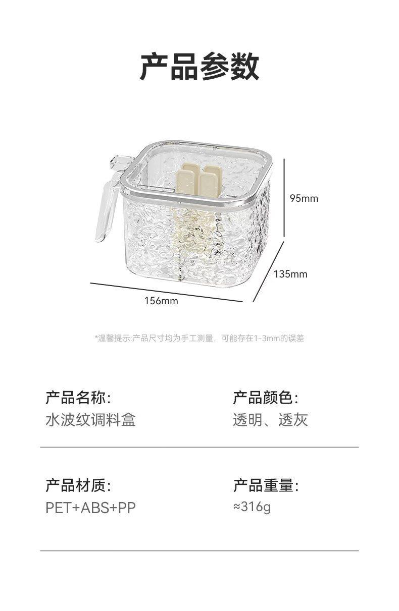 Transparent gray with spoon - water ripple seasoning jar, Transparent spoon-water ripple seasoning jar