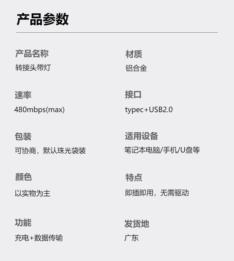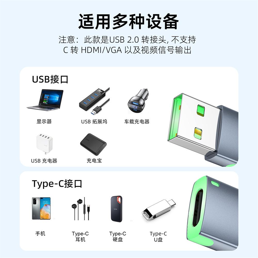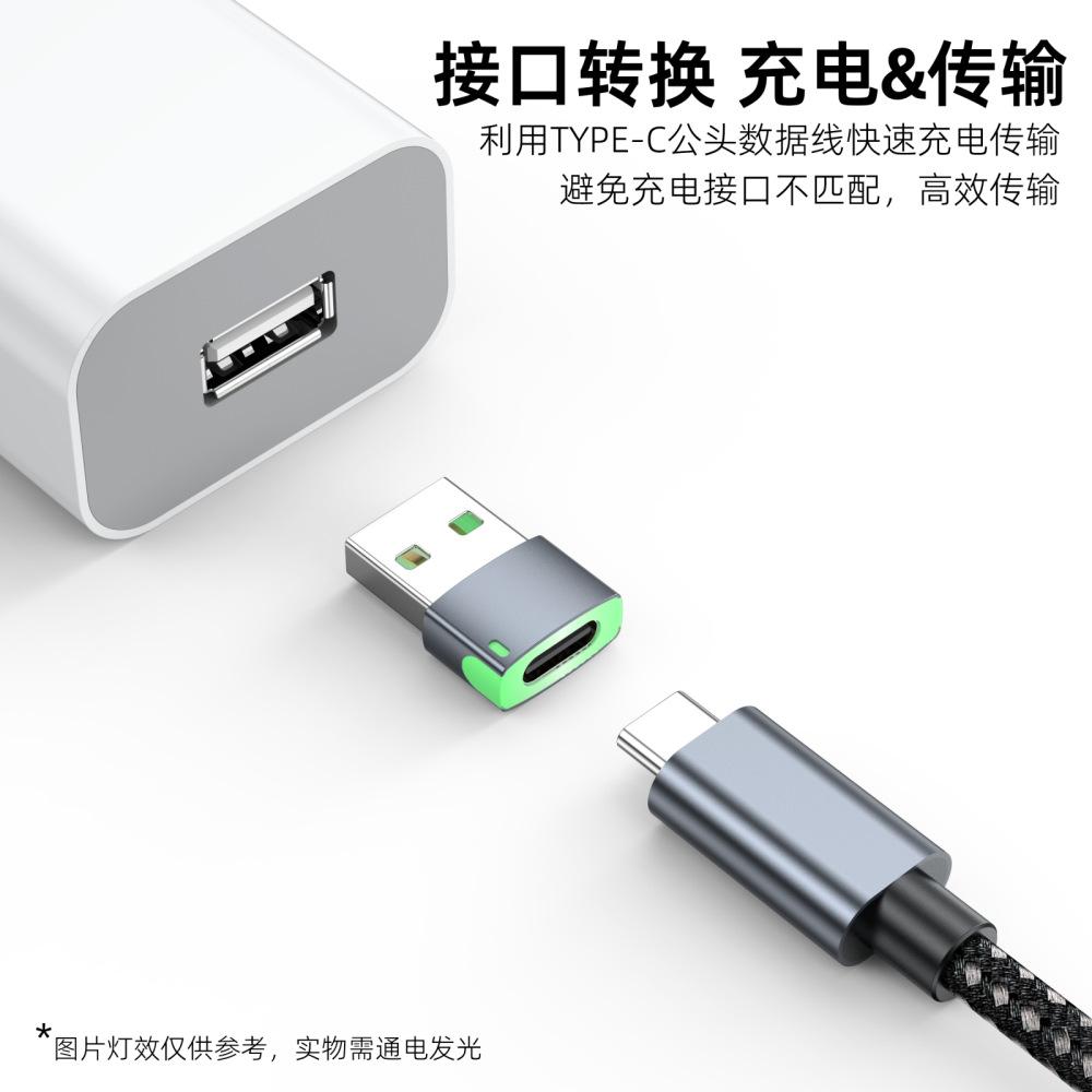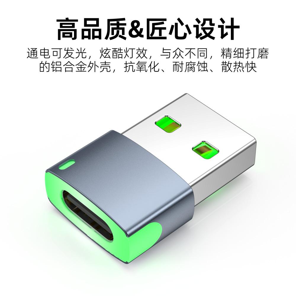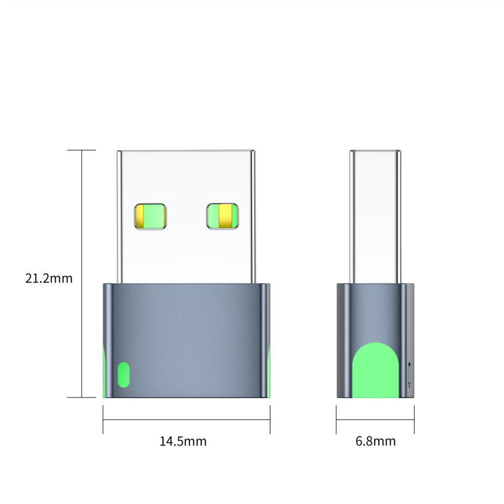Adaptador USB 2.0 Macho a Tipo-C Hembra Emisor de Luz Transmisión de Datos y Carga Adaptador Convertidor Tipo-C
