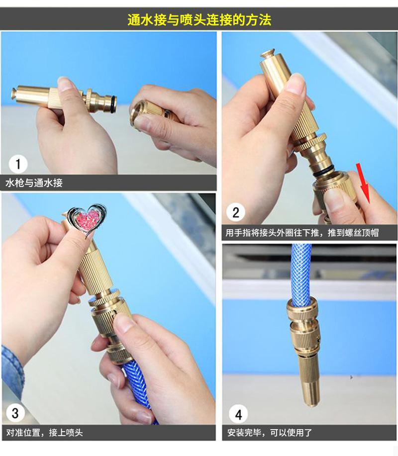 Esta pistola rociadora directa de cobre solo se puede usar después de conectarla a la tubería de agua mediante un conector rápido. Se puede usar directamente. Generalmente no es posible conectarla directamente a la tubería de agua. Incluso si se conecta, habrá fugas y el rendimiento del agua no será óptimo.